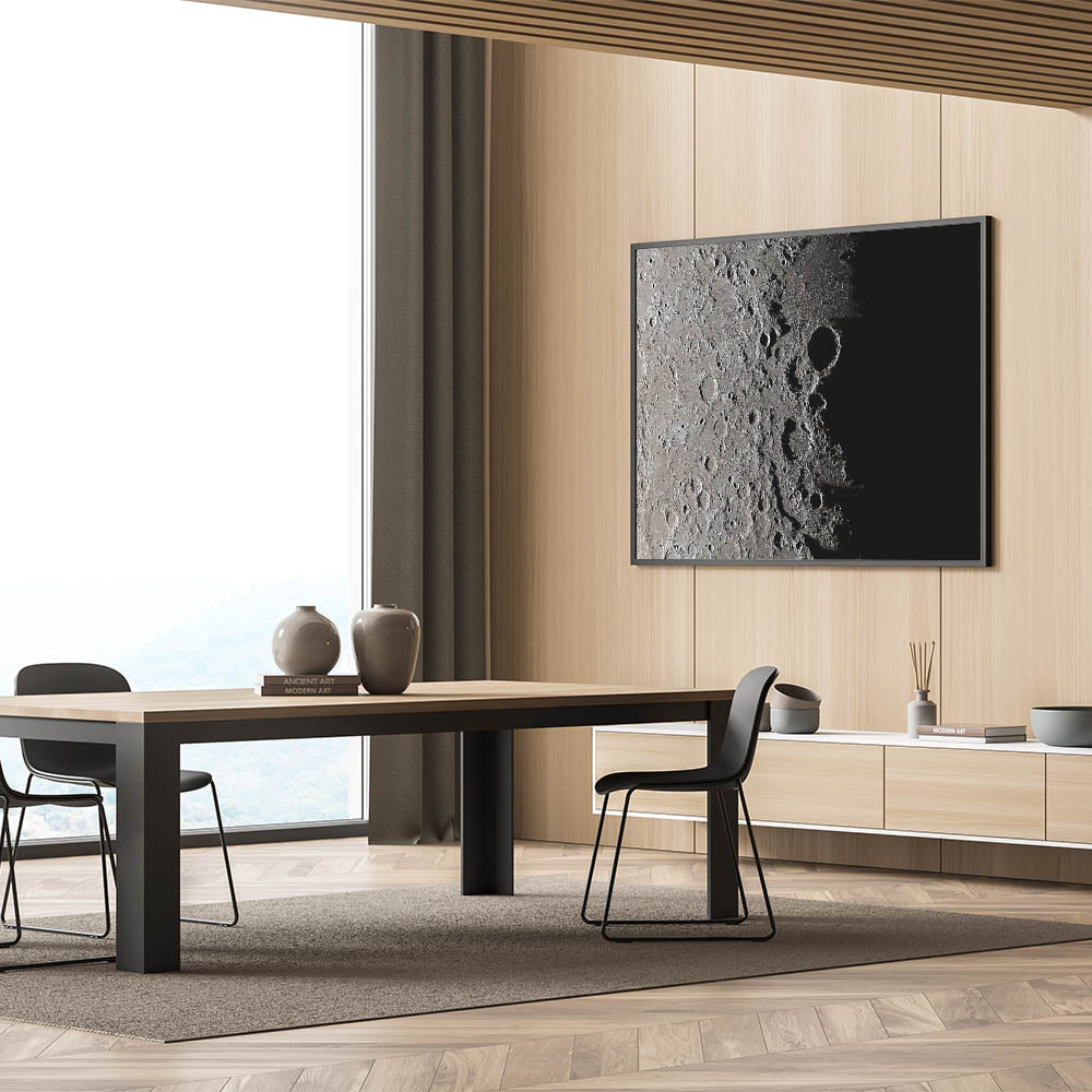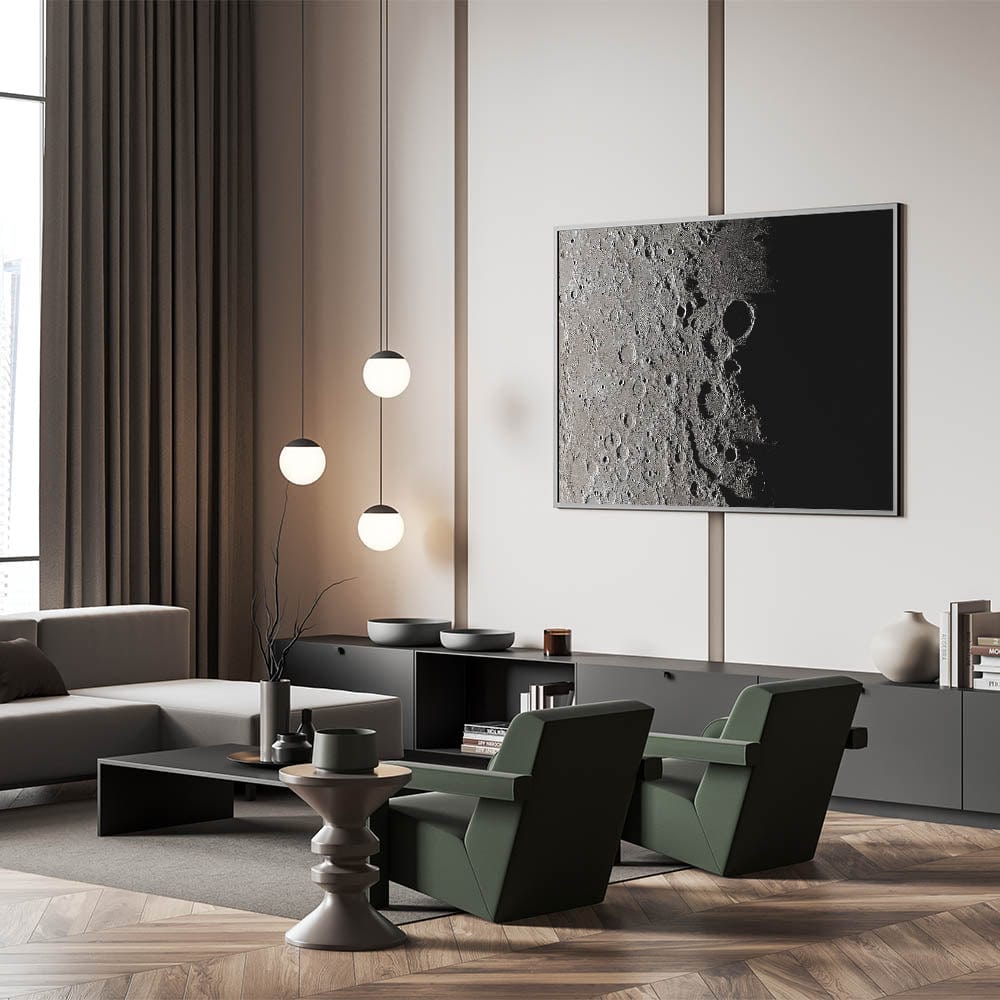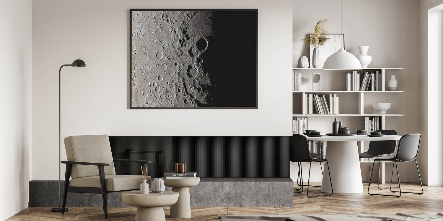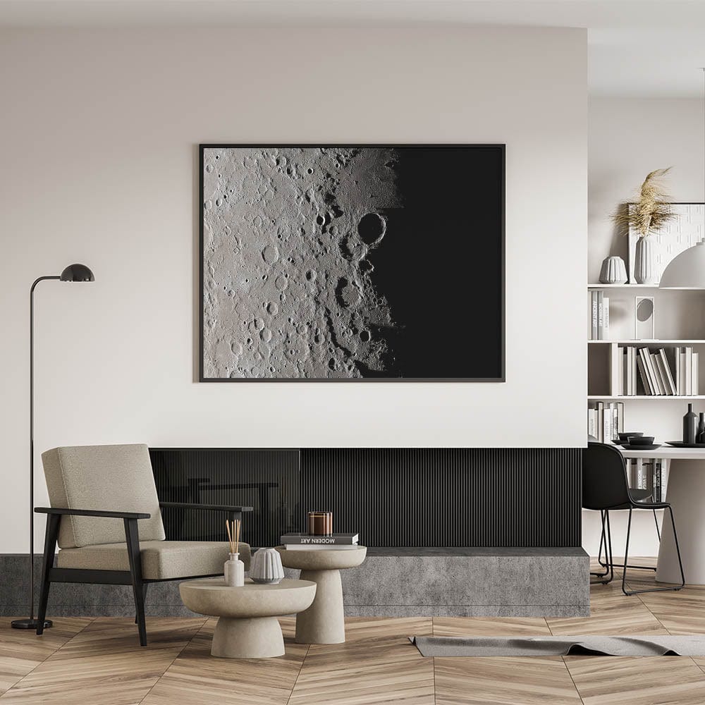 Explore the lunar surface like never before with this stunning NASA-inspired wall art. Capturing the intricate details of moon craters illuminated by space's shadows, this artwork brings the mysteries of lunar exploration into your home or office. Ideal for space enthusiasts and collectors, this piece embodies the spirit of discovery and the allure of the cosmos.