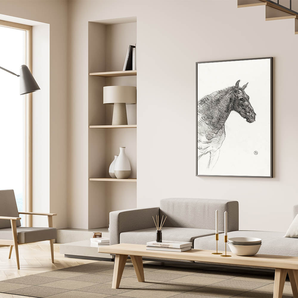This Impressionist artwork is ideal for horse lovers and art enthusiasts alike. Whether displayed in a living room, office, or study, it brings a timeless and elegant touch to your decor. Its simplicity and emotive power make it a truly unique addition to any collection.