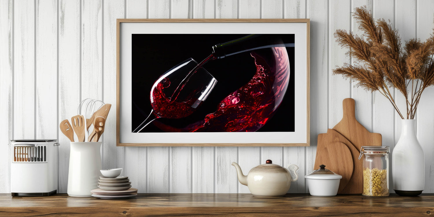 Red Wine Elegance - Modern Kitchen Art for Sophisticated Decor