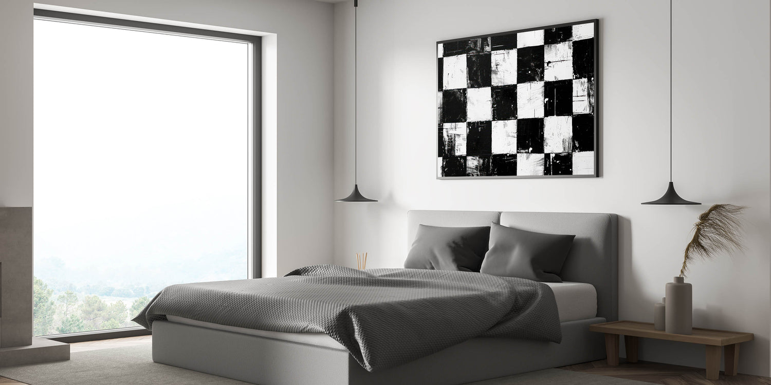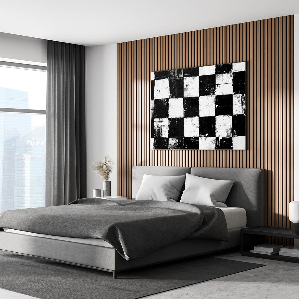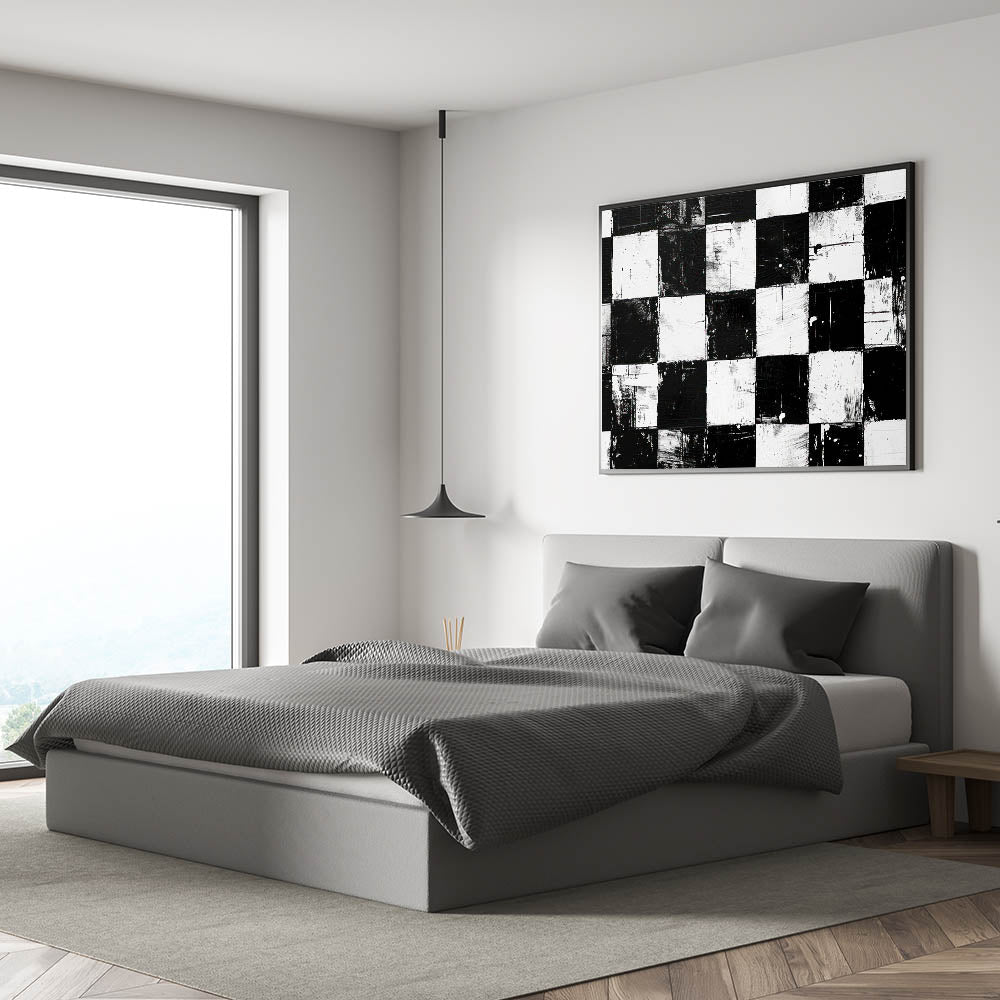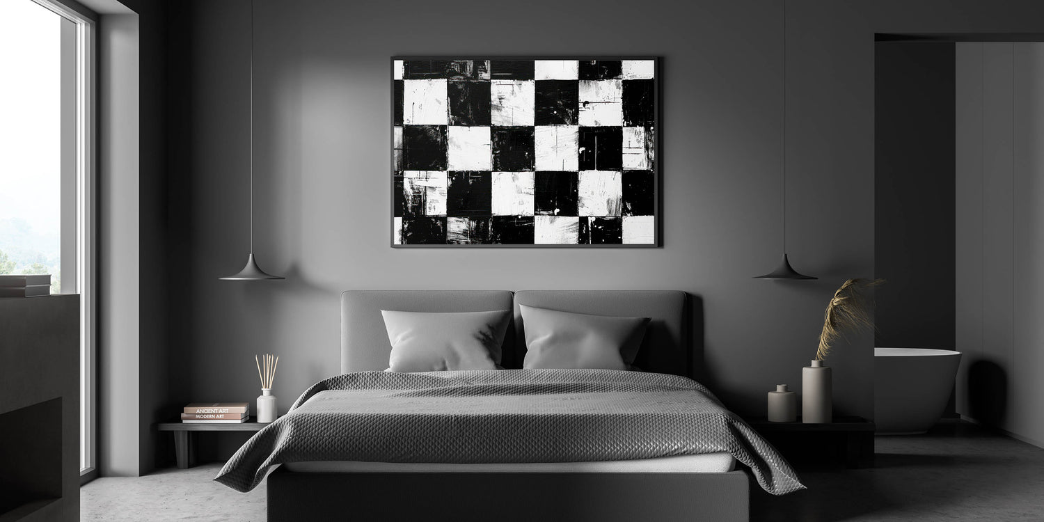 Rolled Canvas Bedroom Art – Black & White Checkered Wall Print