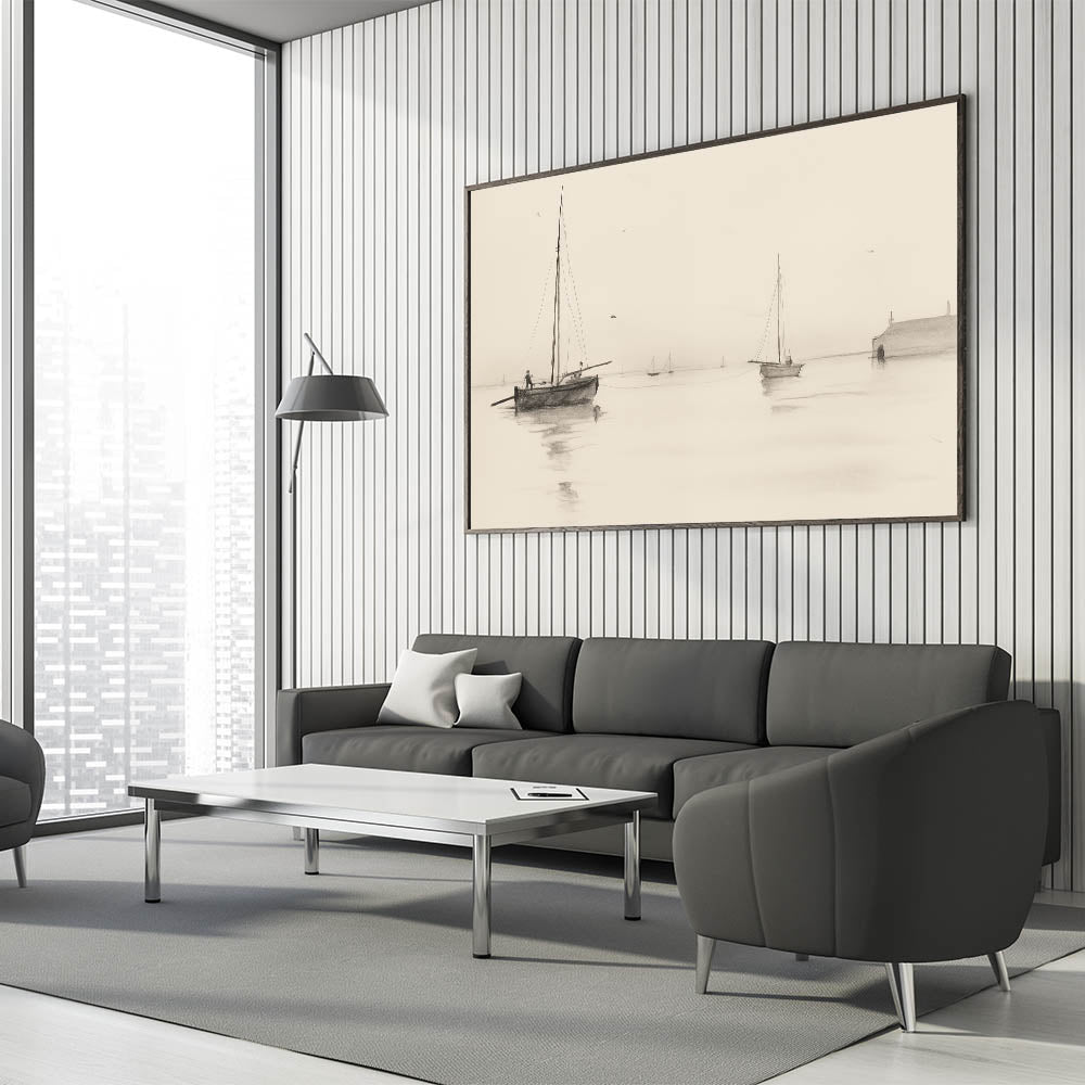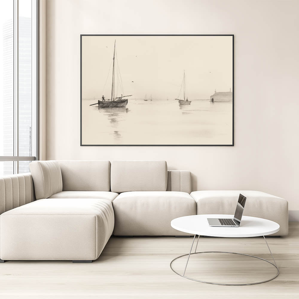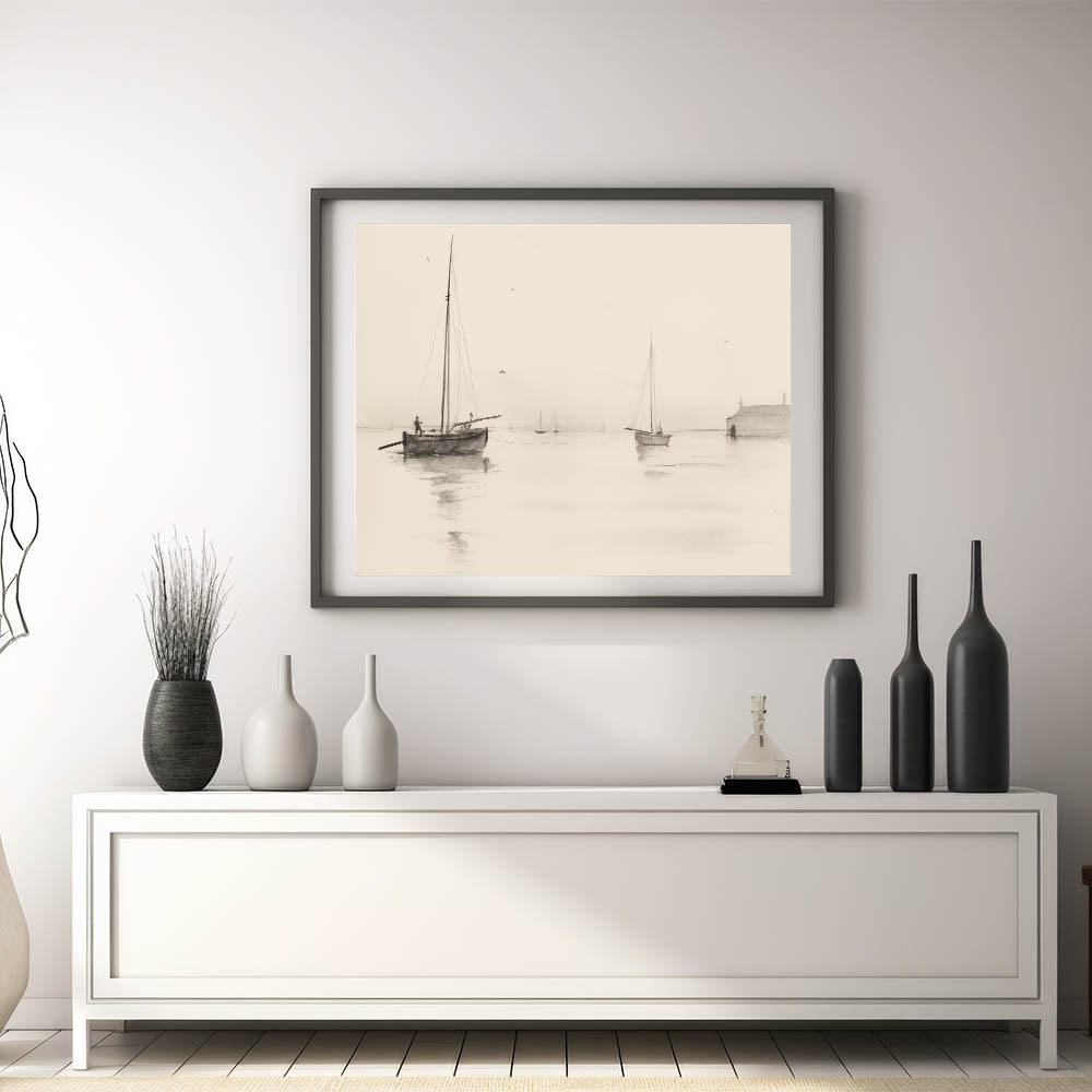 Immerse yourself in the timeless beauty of vintage landscapes with this classic nautical scene wall art. This elegant piece captures the tranquil charm of historic coastal views, evoking a sense of nostalgia with its soft, monochromatic tones. The delicate strokes and detailed sailboats transport you to a serene moment on calm waters, making it an ideal choice for lovers of antique scenery art.