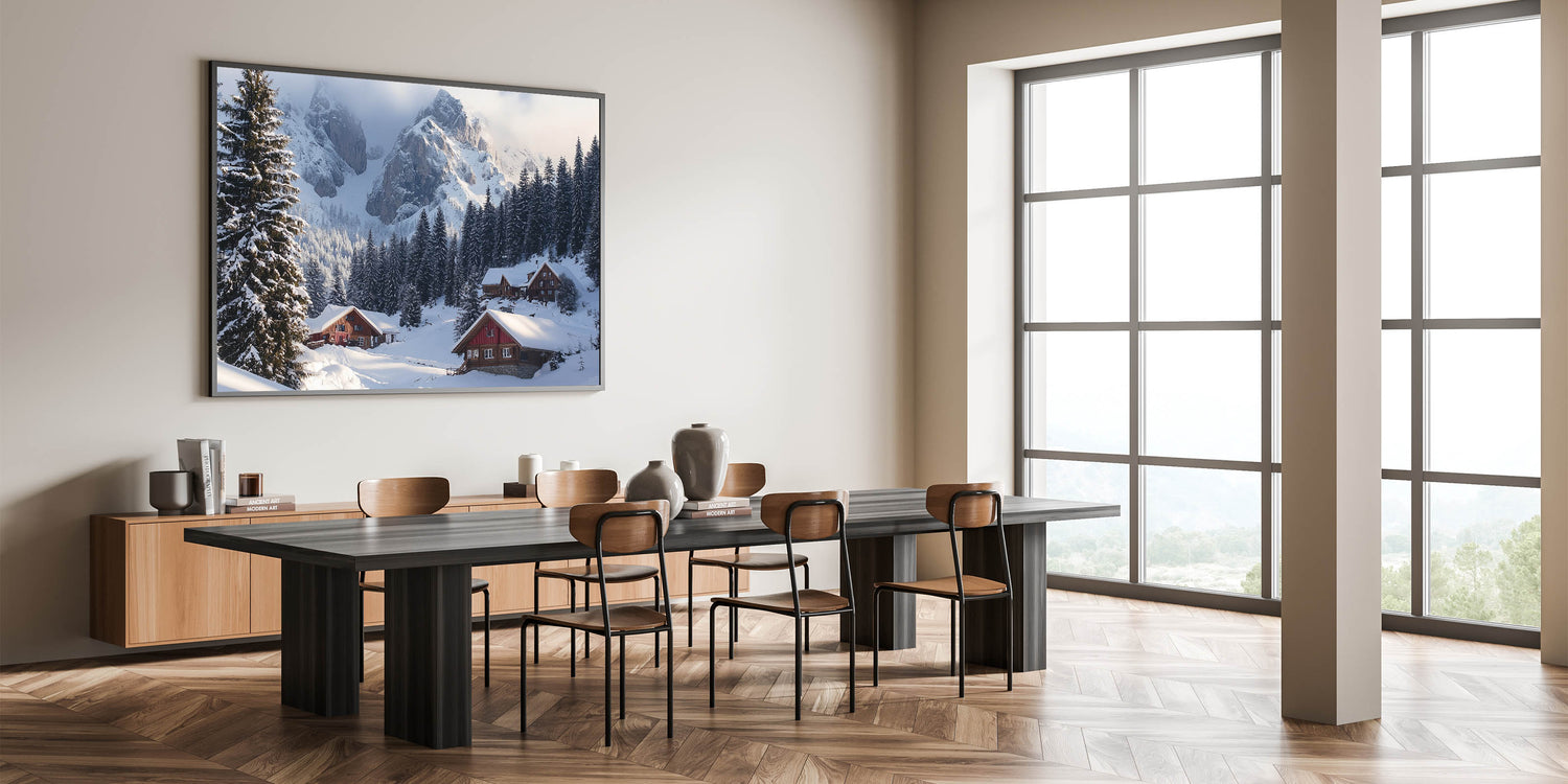 - Perfect for rustic wall decor with countryside views or modern winter-themed interiors.