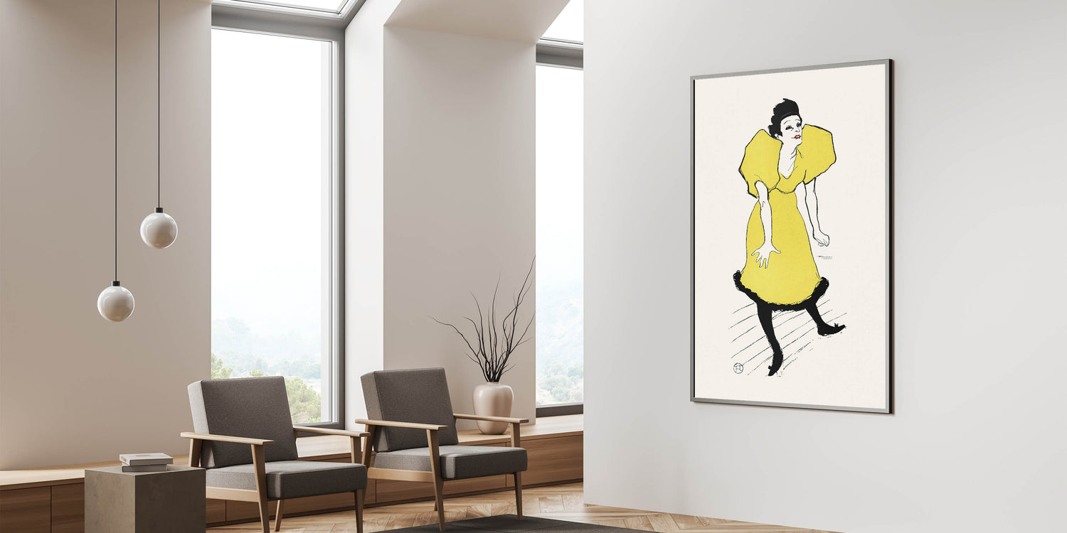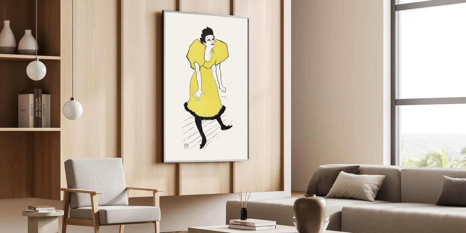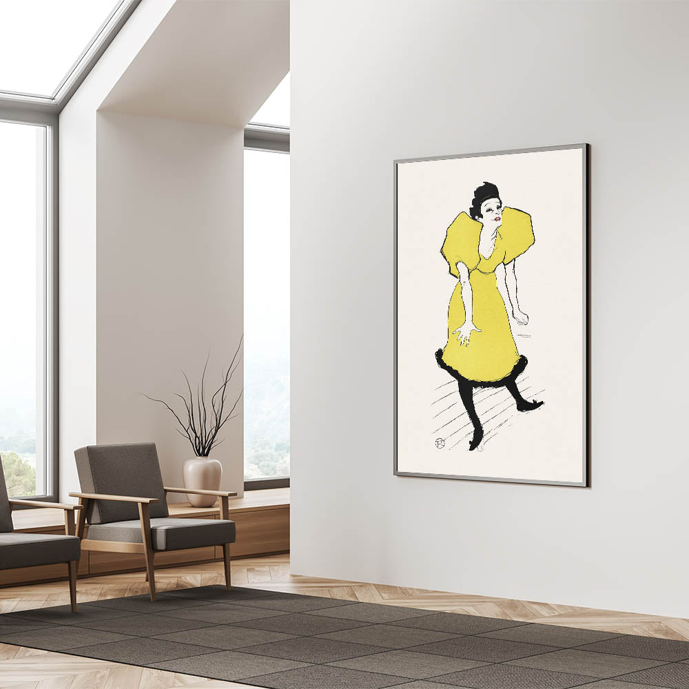 Celebrate the vibrant spirit of theater with Henri de Toulouse-Lautrec’s "Portrait of Polaire on Stage" (1895). This iconic artwork captures the elegance and theatrical charisma of Polaire, a celebrated actress of the time. The bold yellow dress, paired with the artist’s minimalist use of line and color, makes this piece a striking example of Lautrec’s mastery in poster and portrait art.