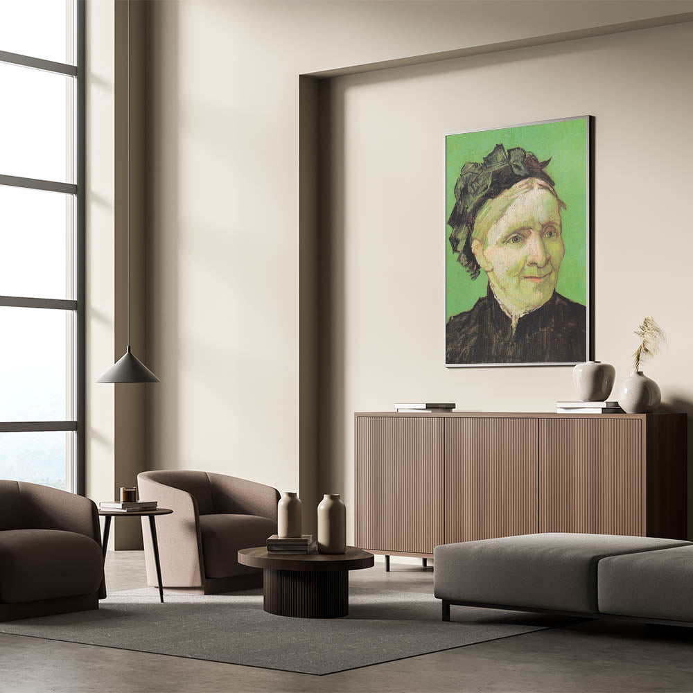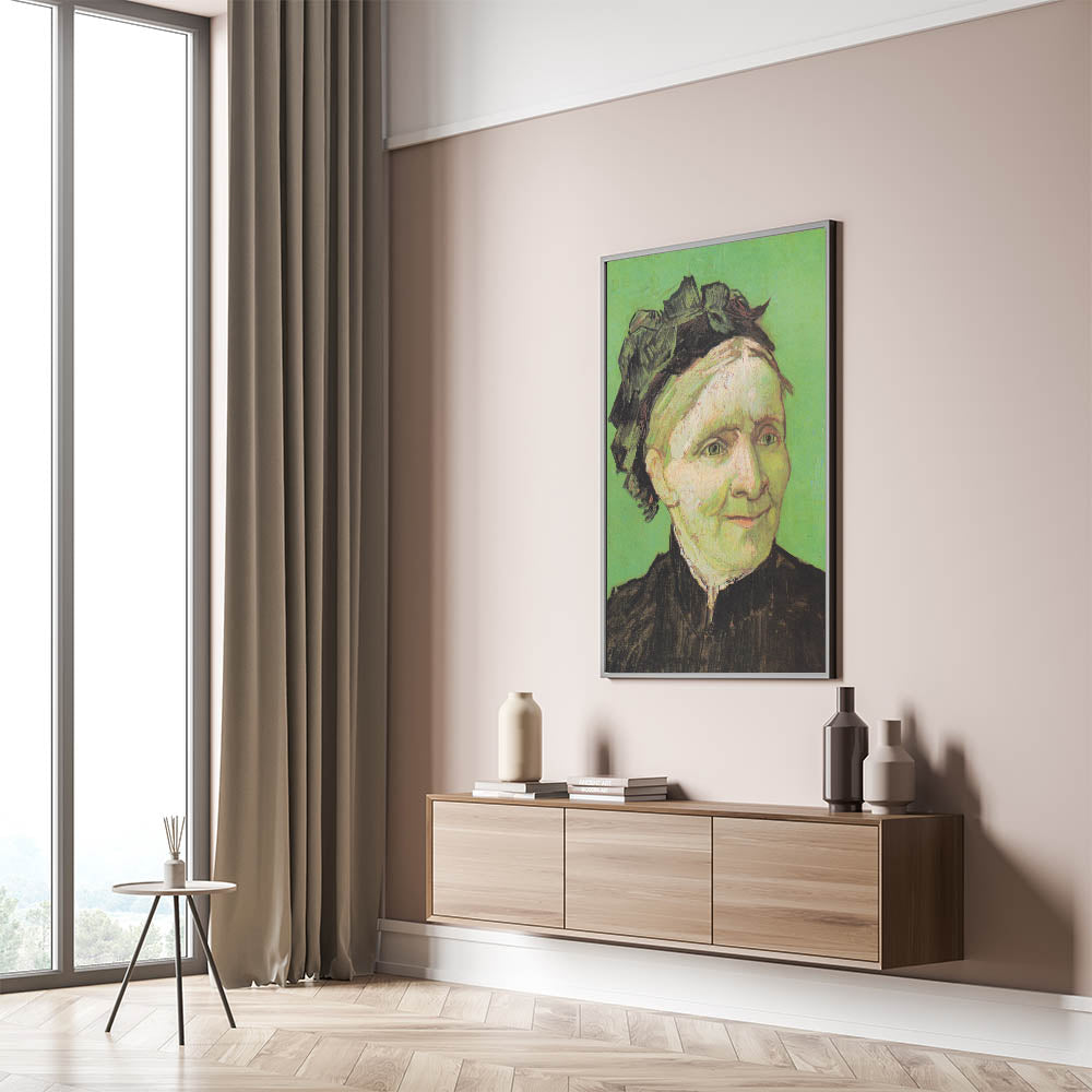 Celebrate the beauty of human emotion with Vincent van Gogh’s Portrait of a Woman. This stunning artwork captures a serene and contemplative expression, highlighted by Van Gogh’s masterful use of soft brushstrokes and vibrant hues. The green background, paired with the subject's dark attire, creates a striking contrast that draws the eye and evokes a sense of warmth and intimacy.