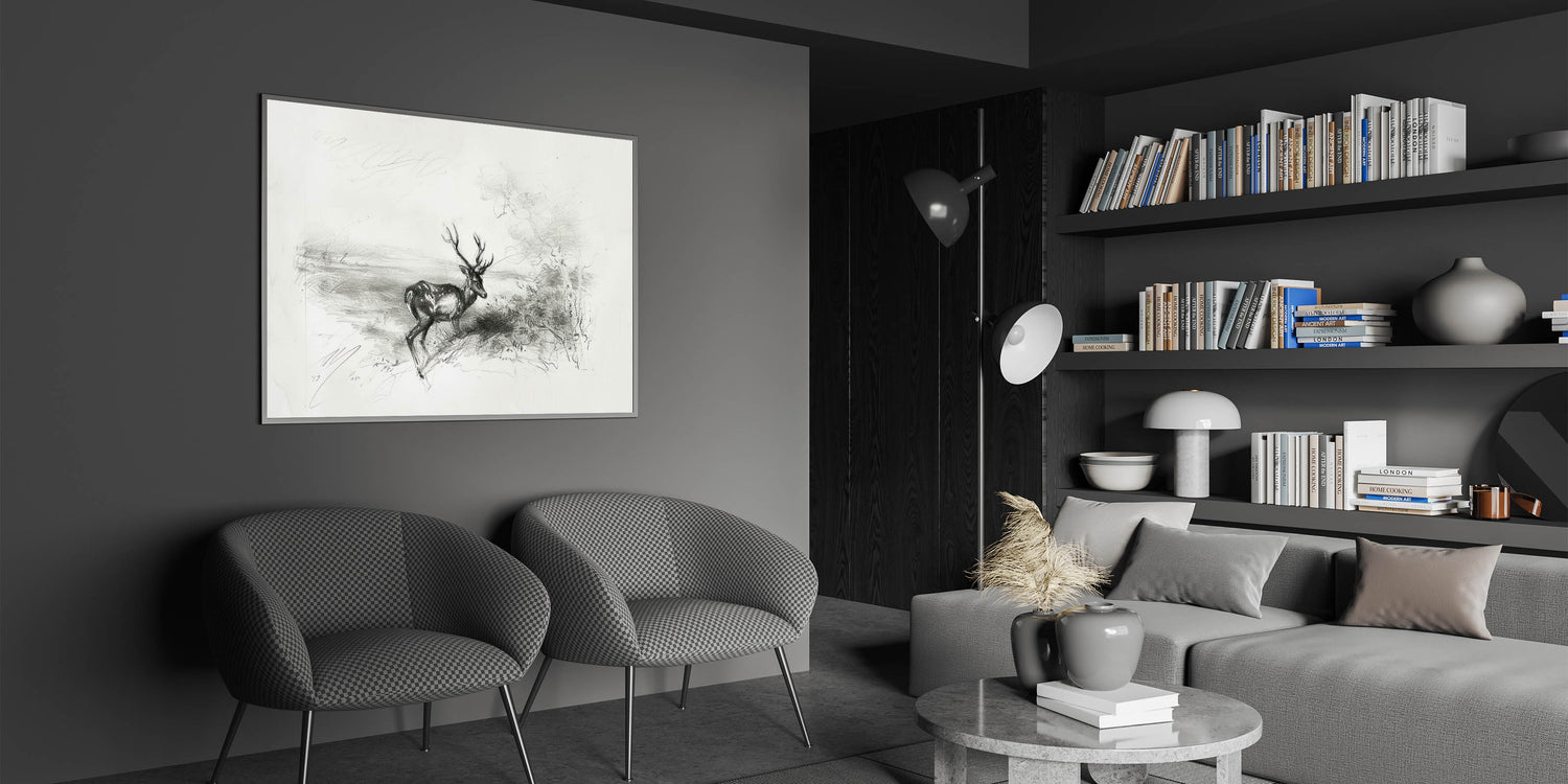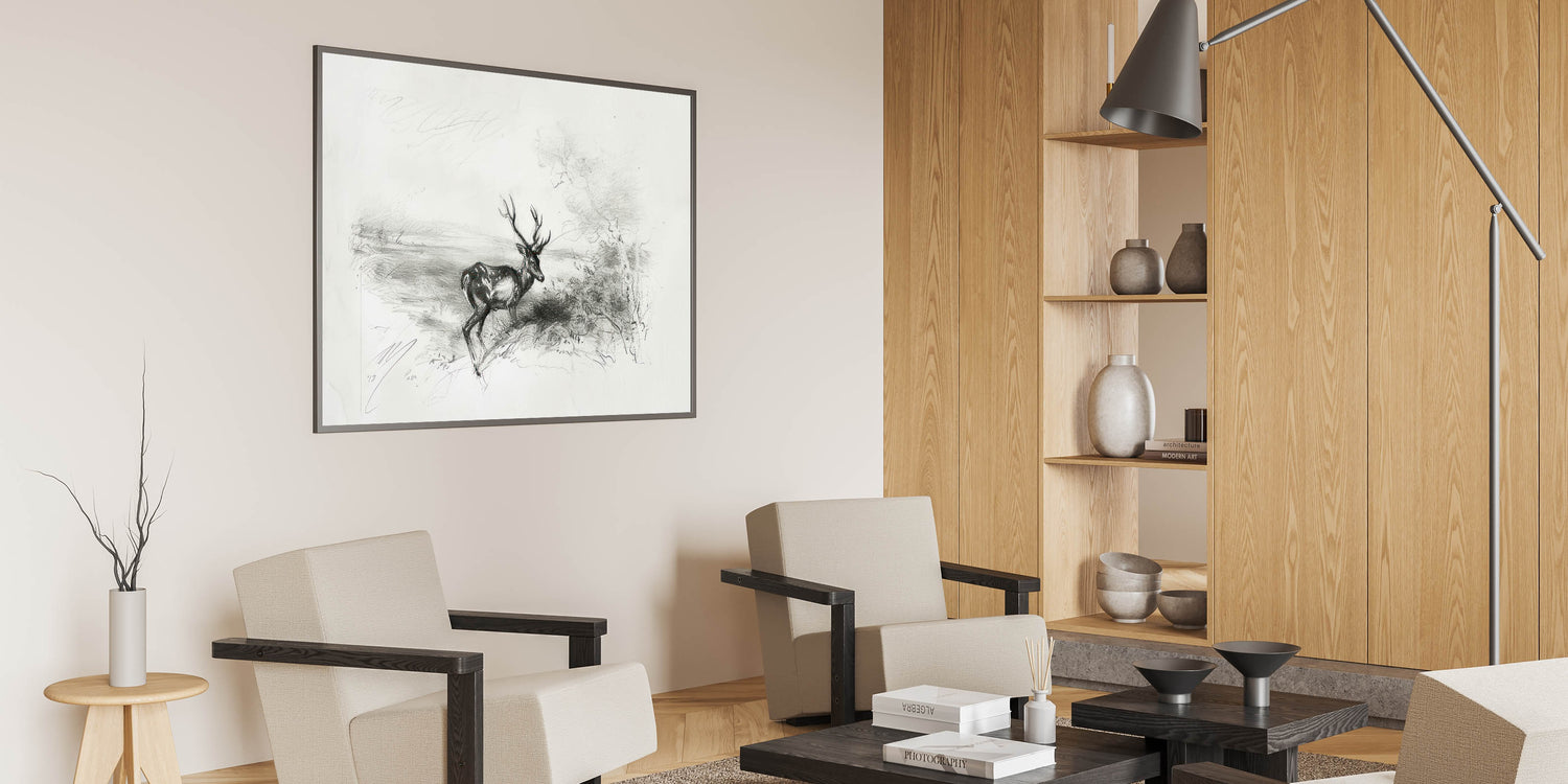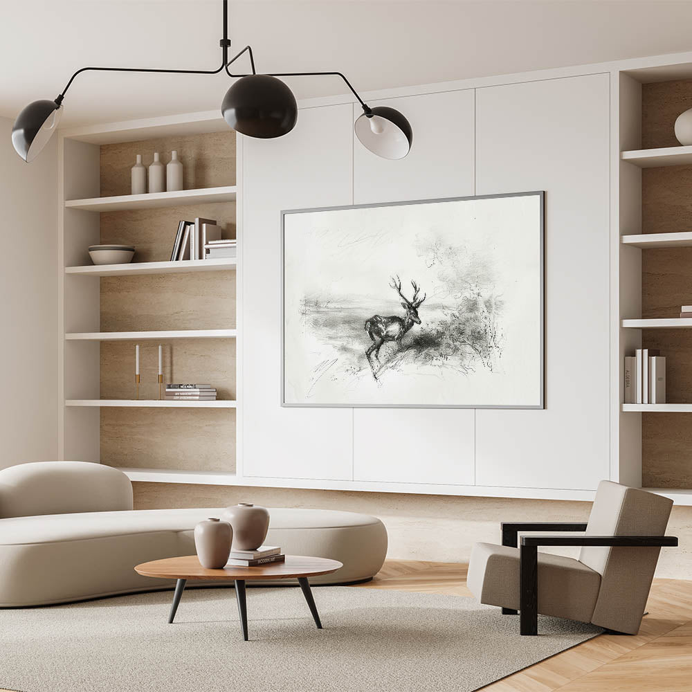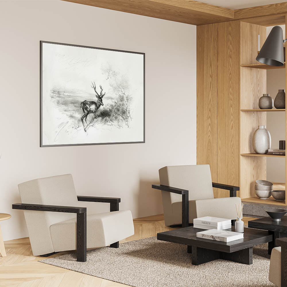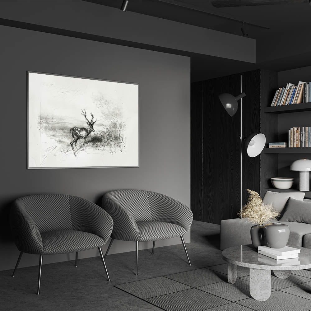 Majestic Deer Sketch - Monochrome Canvas Prints for Elegant Decor