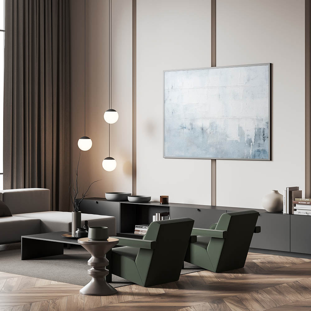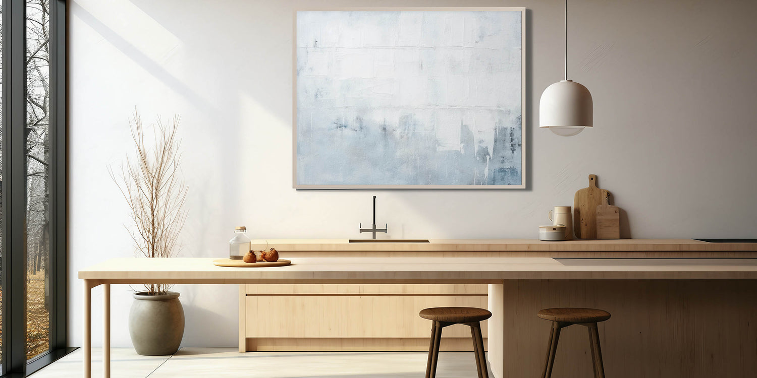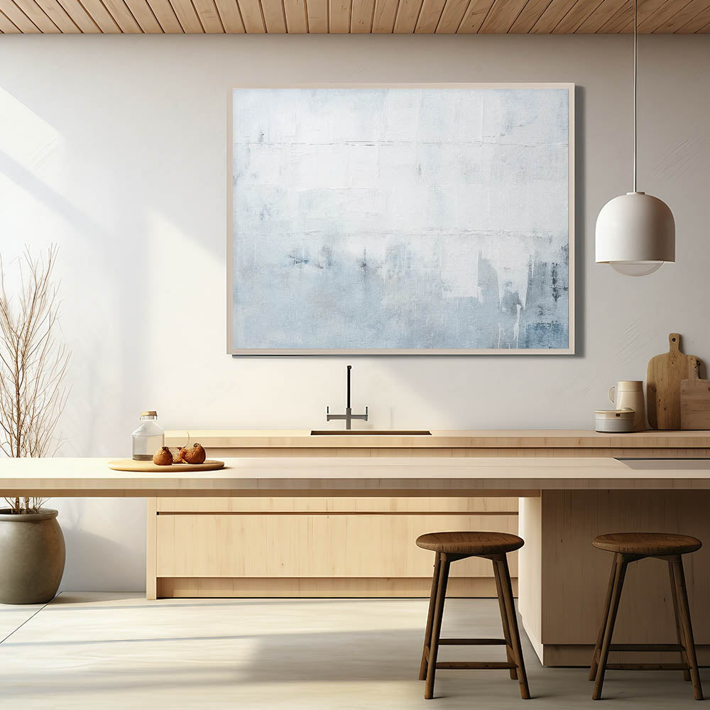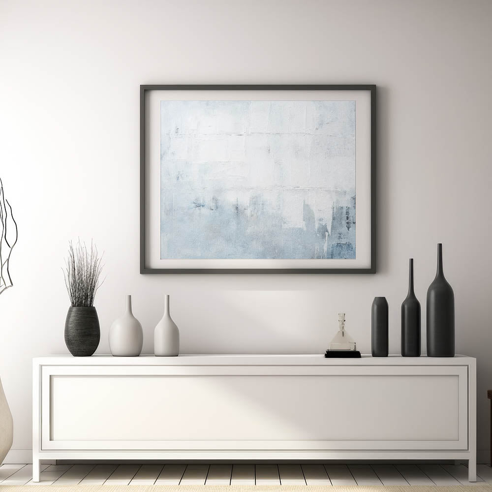 This abstract strokes wall art is perfect for those who appreciate subtle elegance and a calm color scheme. Its winter-inspired palette makes it an excellent addition to spaces that seek a tranquil, stylish aesthetic.