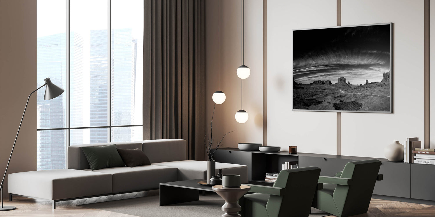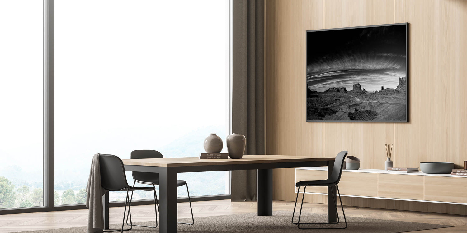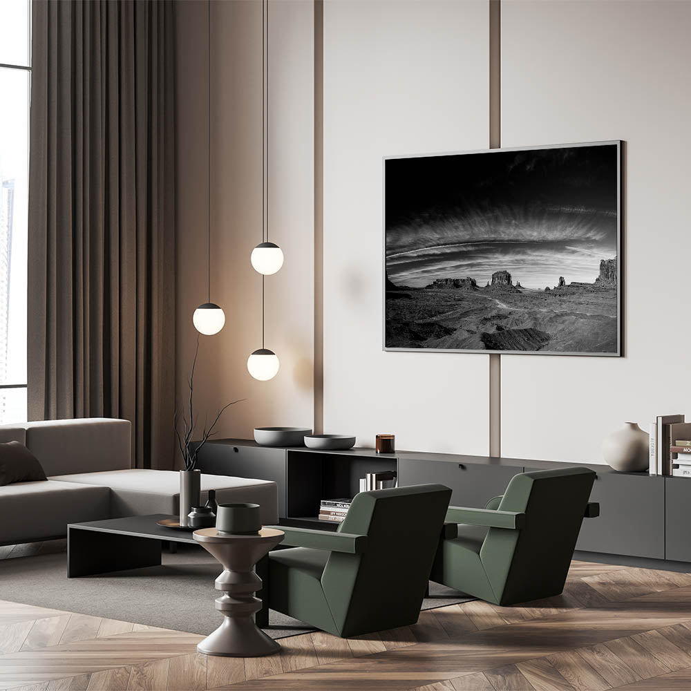- Striking Monochrome Detail: The rich textures of the desert landscape and the dramatic sky are captured with incredible detail, creating a visually captivating piece that stands out in any room.