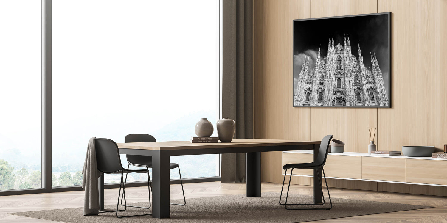 Transform your home with this exquisite piece of black and white cathedral art, offering both aesthetic appeal and a deep connection to European heritage.