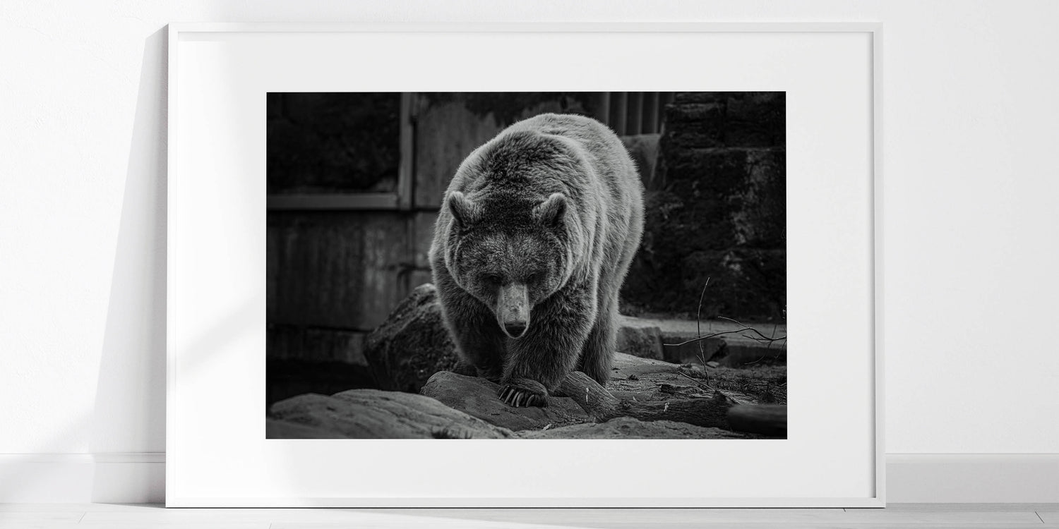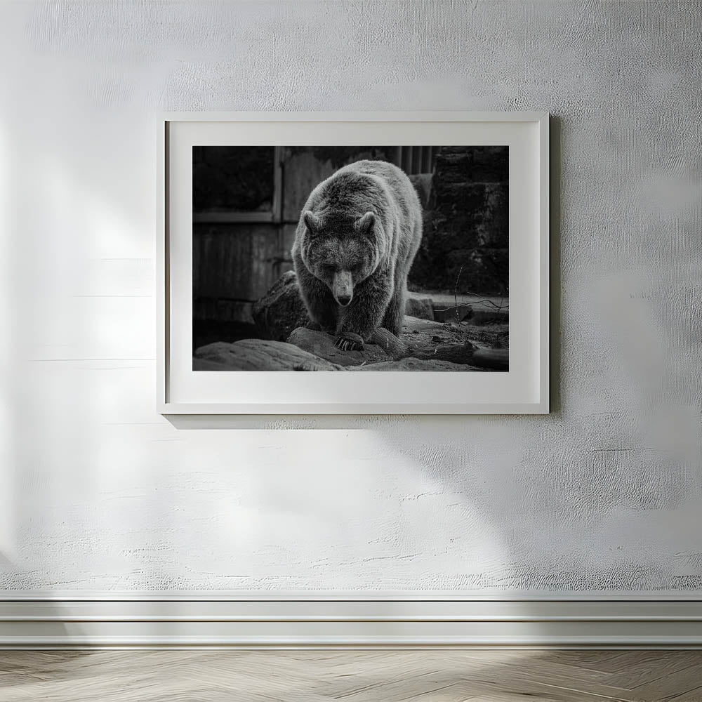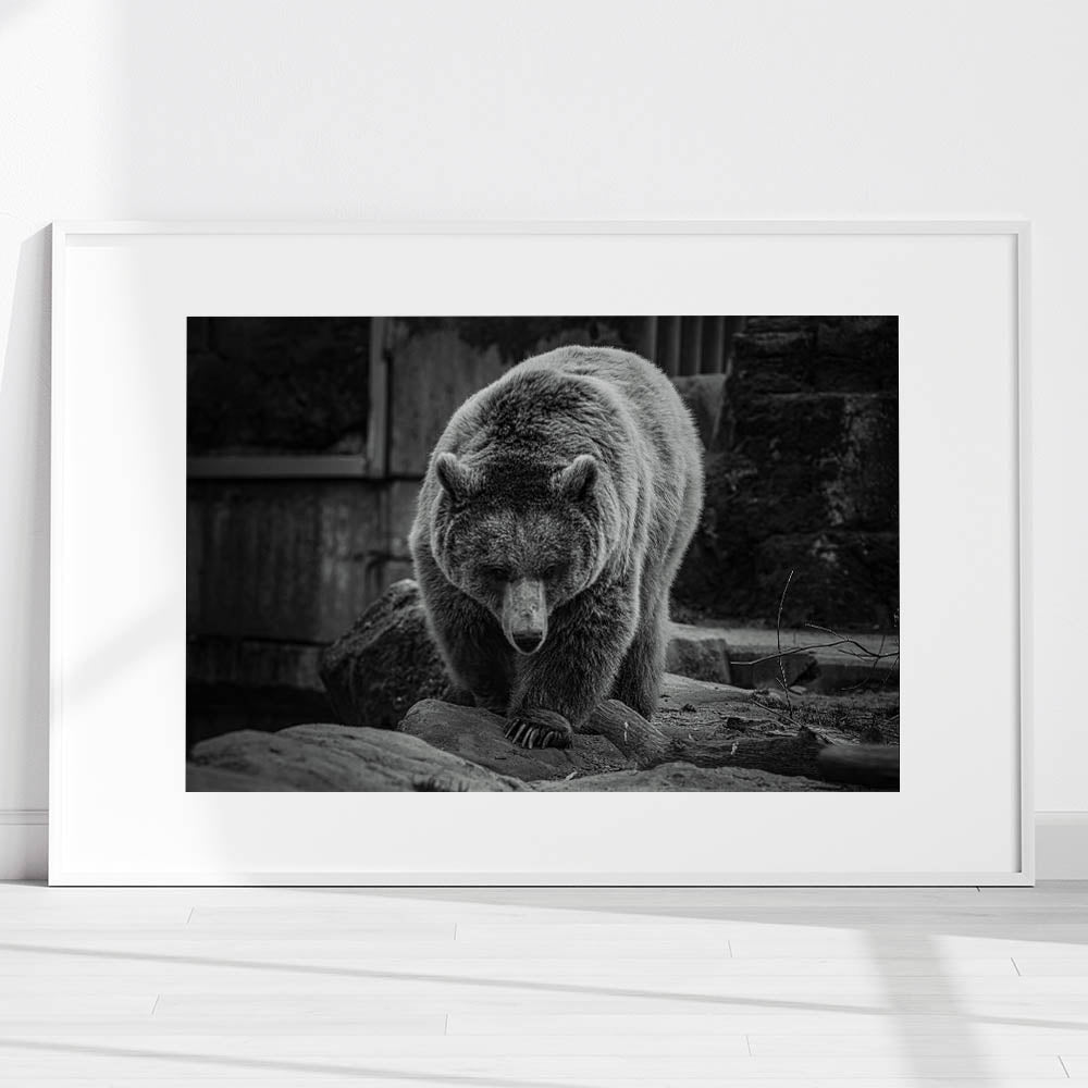 Embrace the quiet strength and majesty of nature with this elegant black and white bear wall art. This captivating photograph captures the bear in a moment of serene focus, its powerful presence emanating through every detail. Perfect for wildlife enthusiasts and those who appreciate the beauty of the wild, this high-quality bear photograph is available in various formats including stretched canvas, framed canvas, acrylic glass, and more, allowing you to select the ideal presentation for your space.