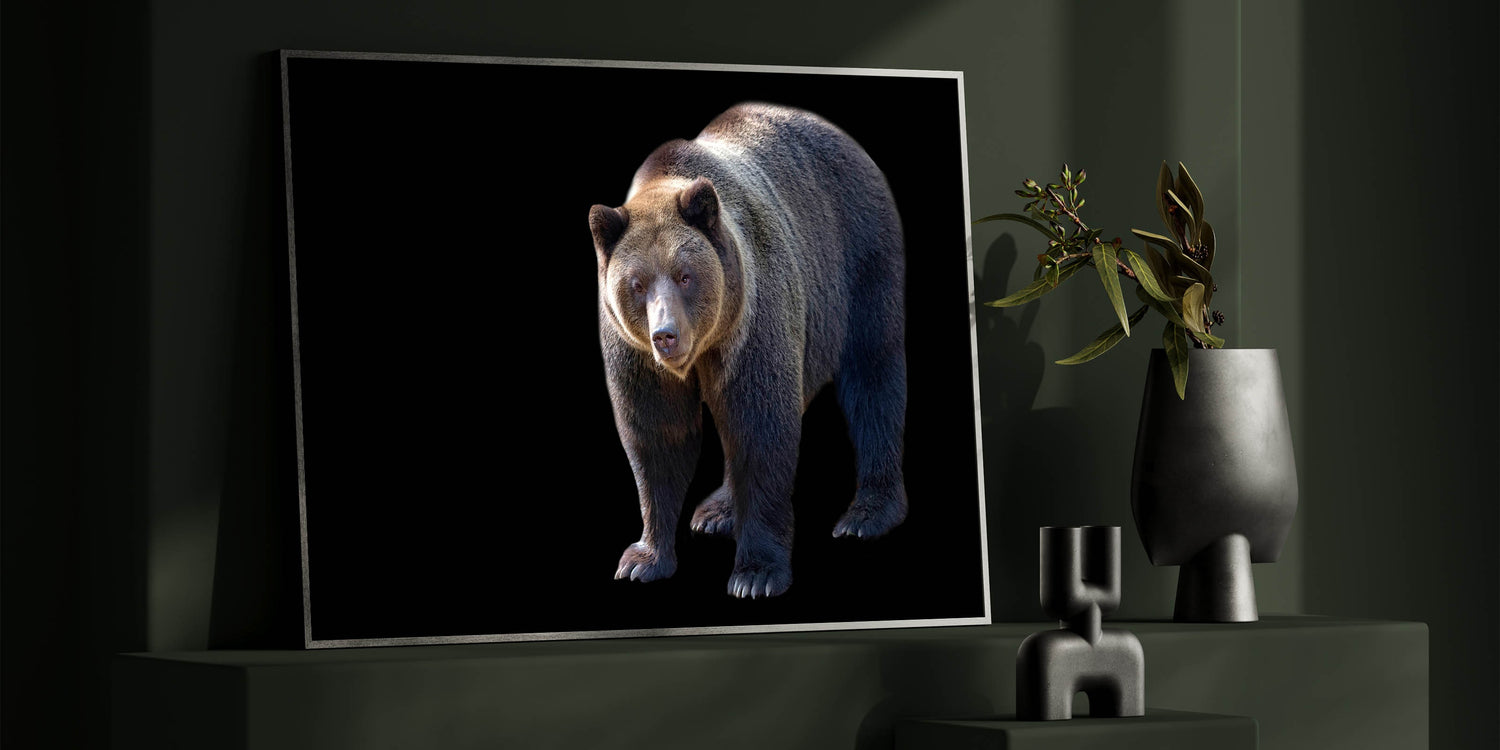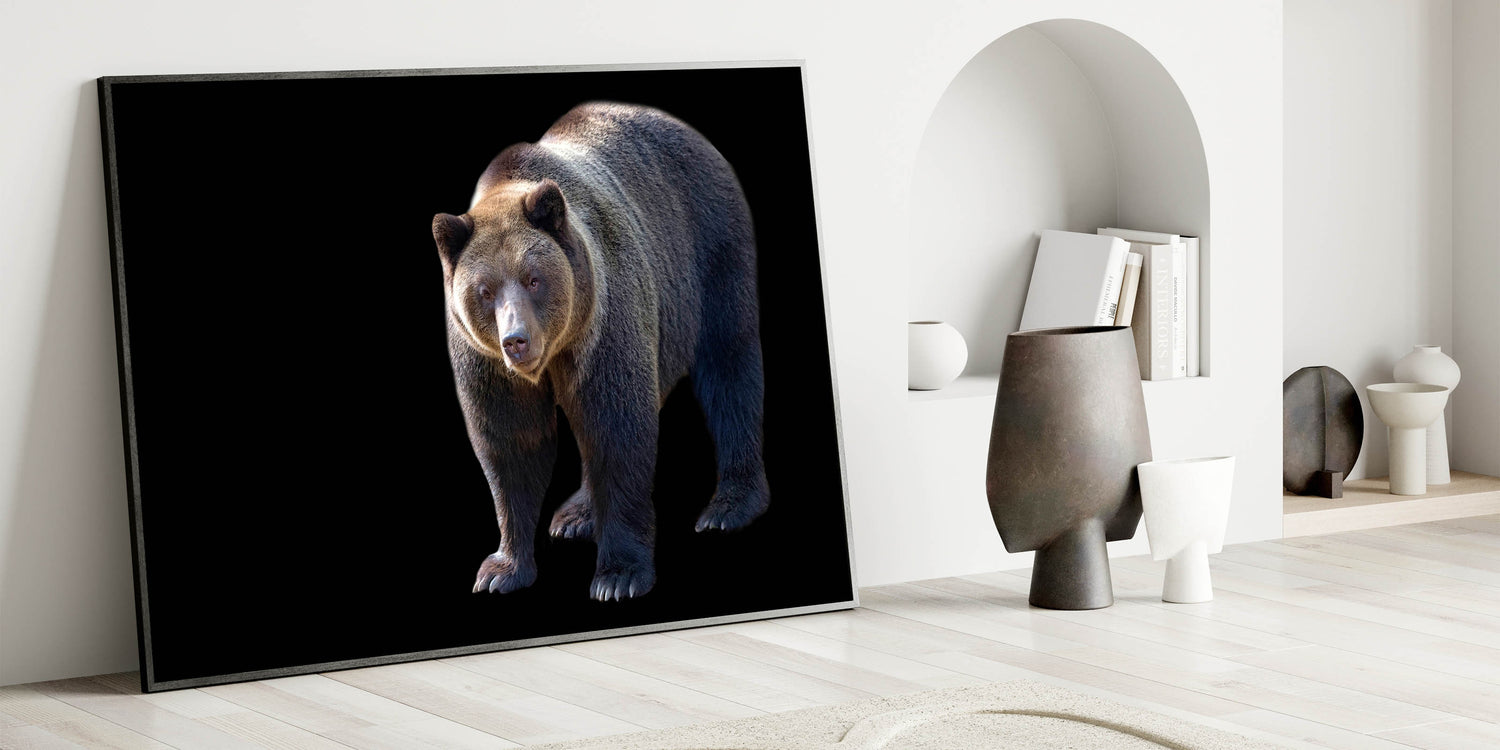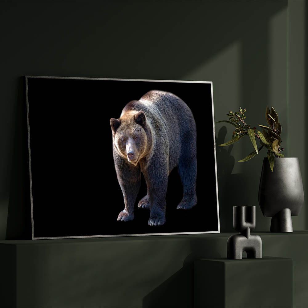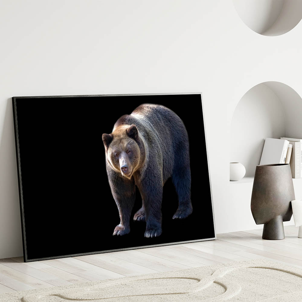Powerful Brown Bear – Striking Wildlife Wall Art Print on Black