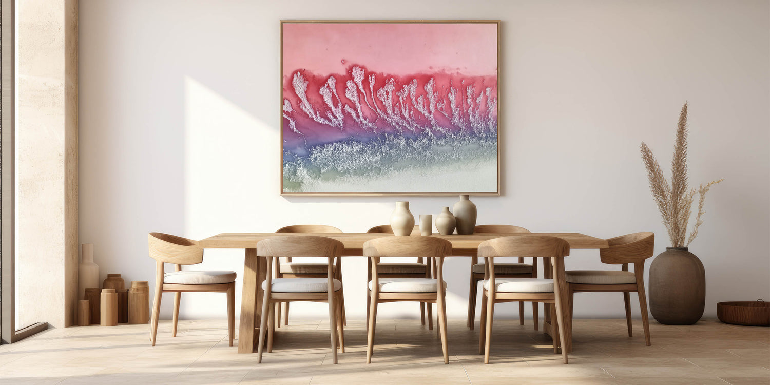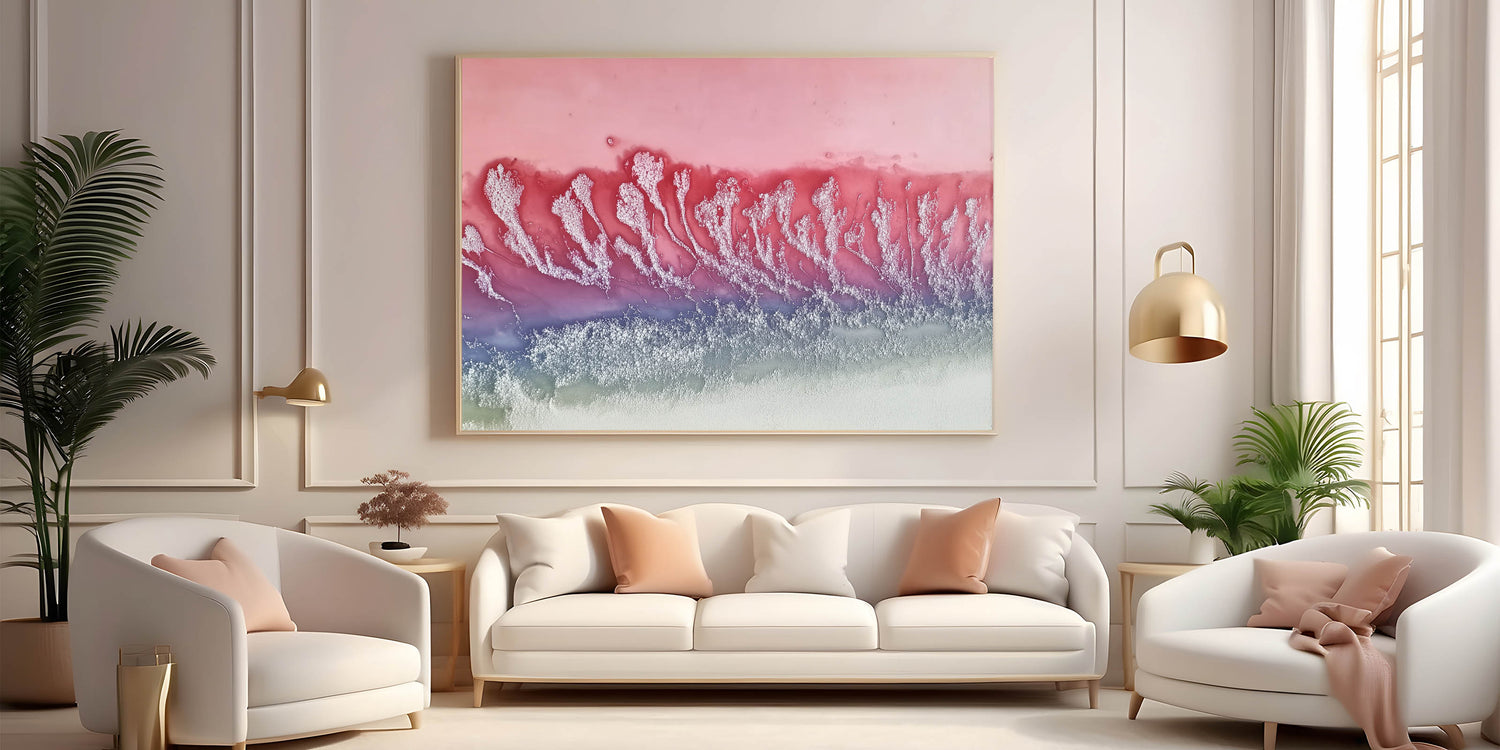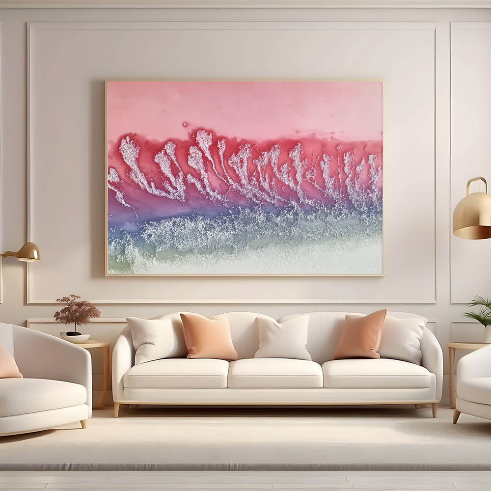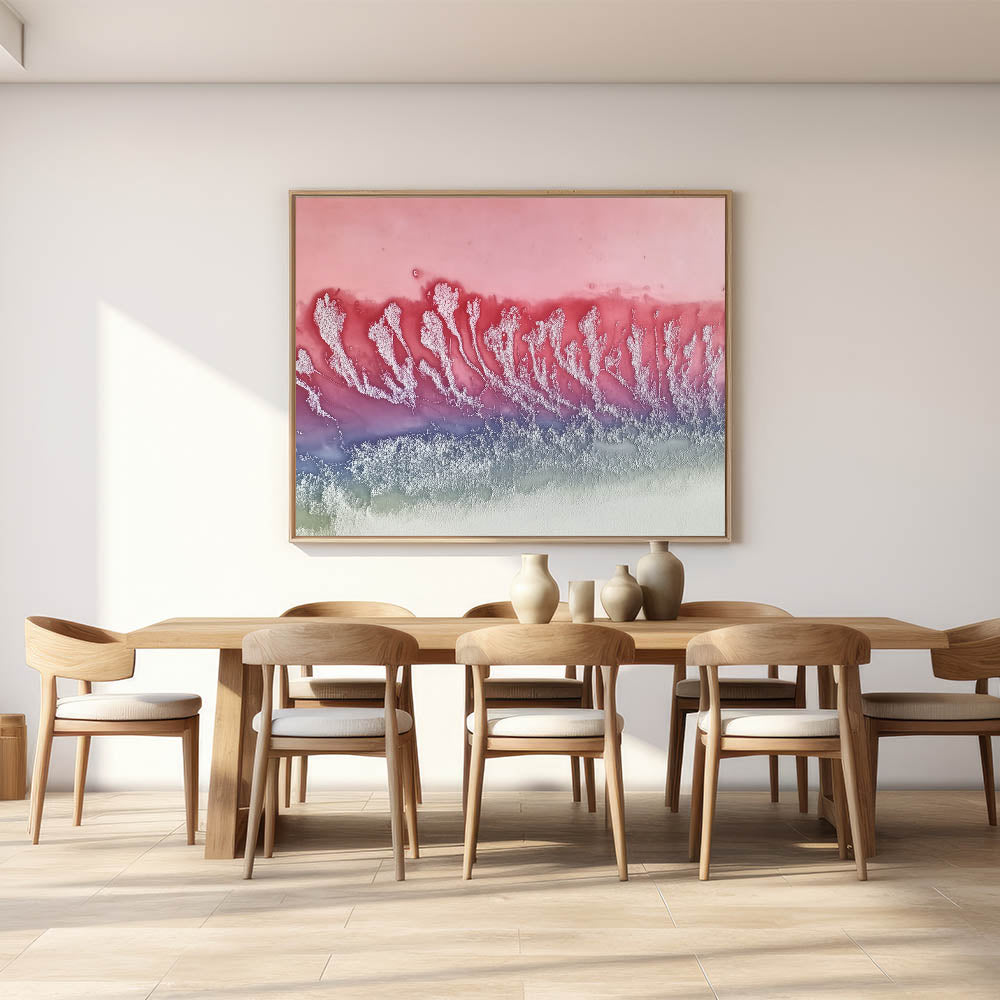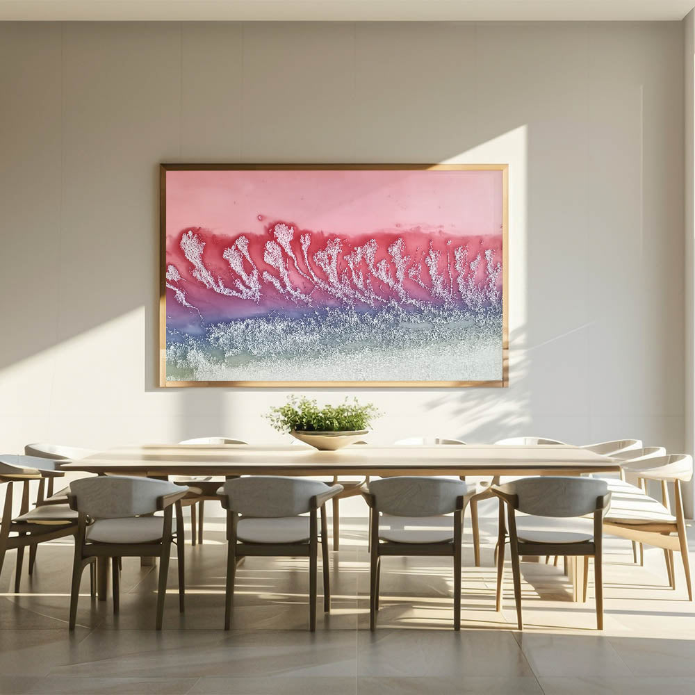 Elevate your space with this stunning abstract landscape art, featuring a vibrant blend of pink, blue, and green tones with intricate natural textures. The artistic design captures the beauty of organic forms, creating a sense of movement and energy. Perfect for contemporary living rooms, bedrooms, or offices, this piece adds a bold yet calming touch to any interior.