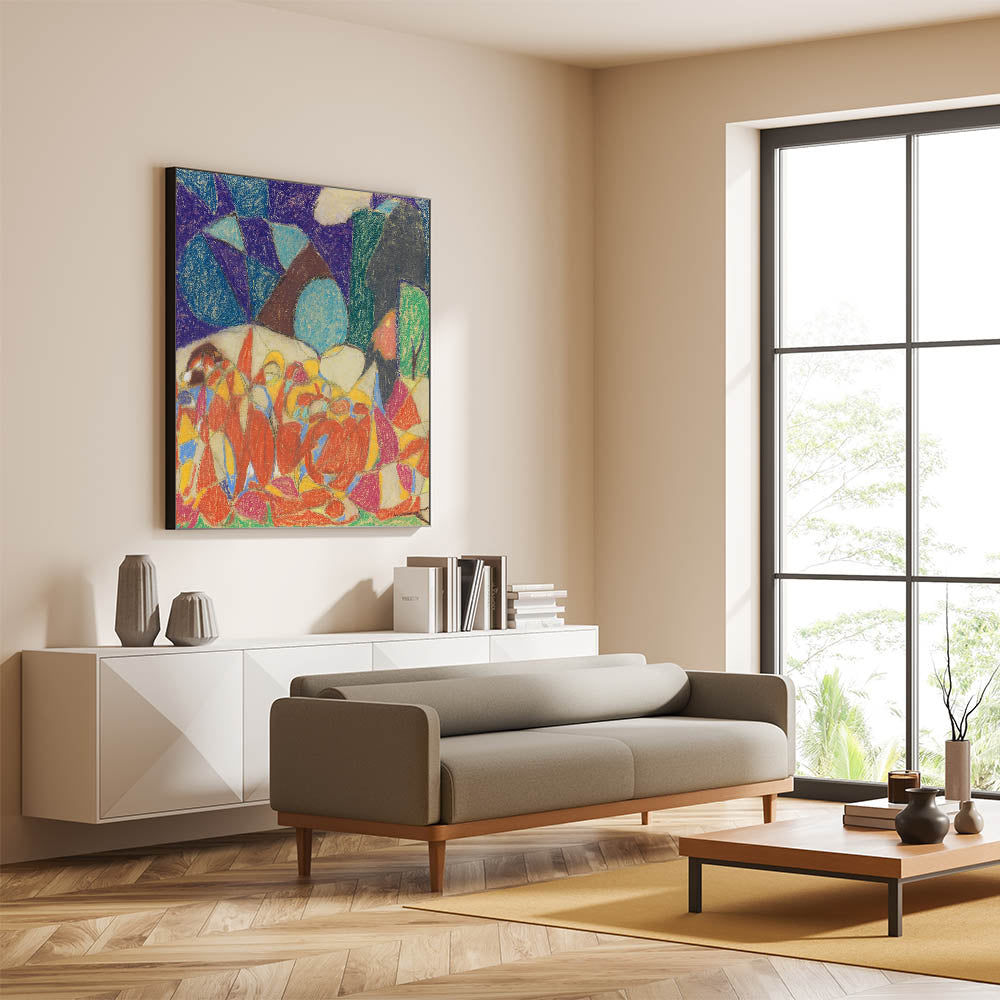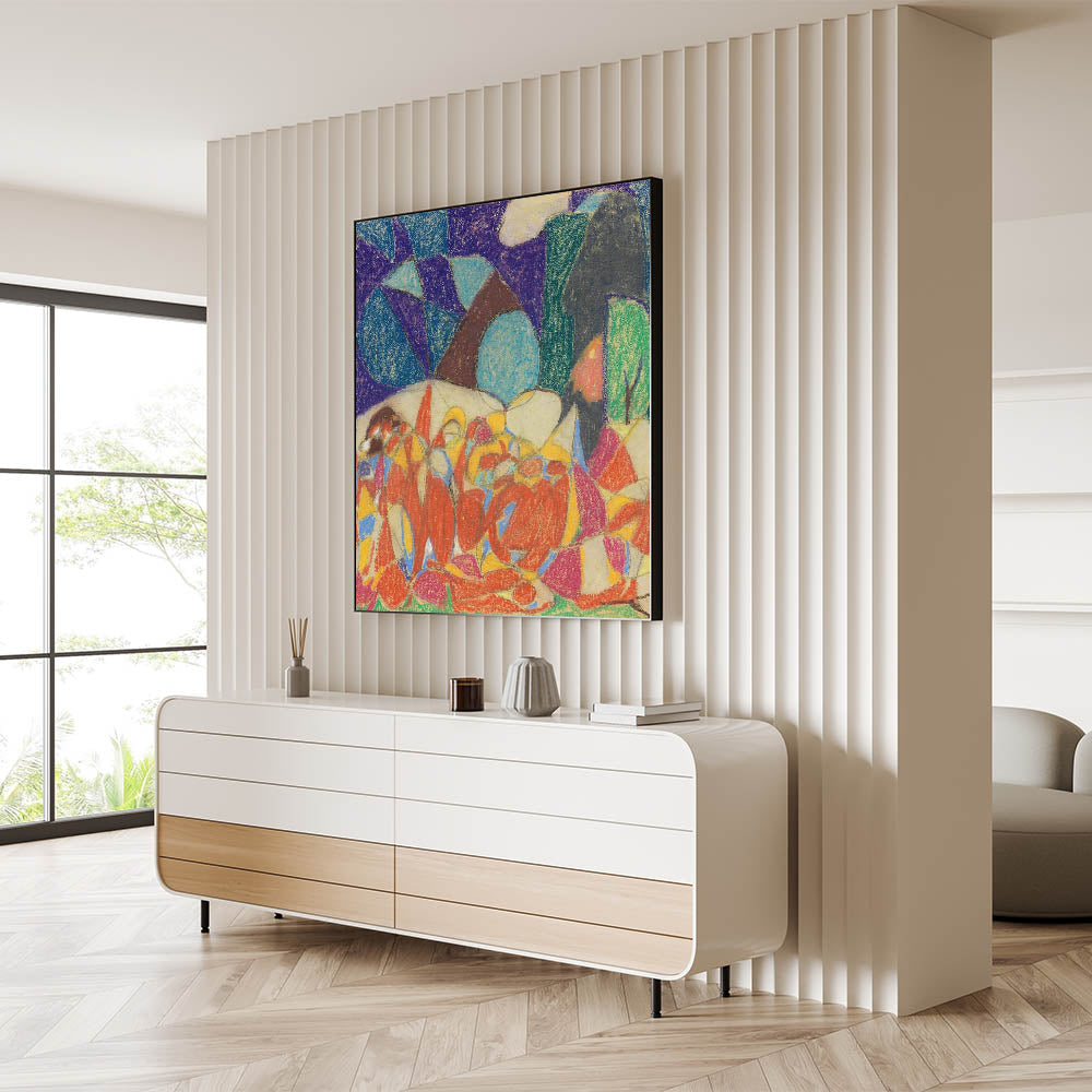 - High-quality reproduction of Adolf Hölzel’s vibrant abstract painting.