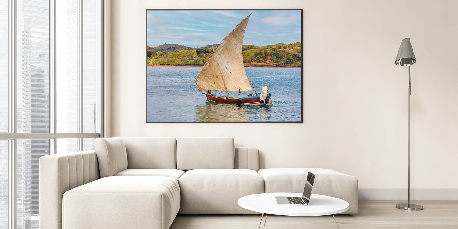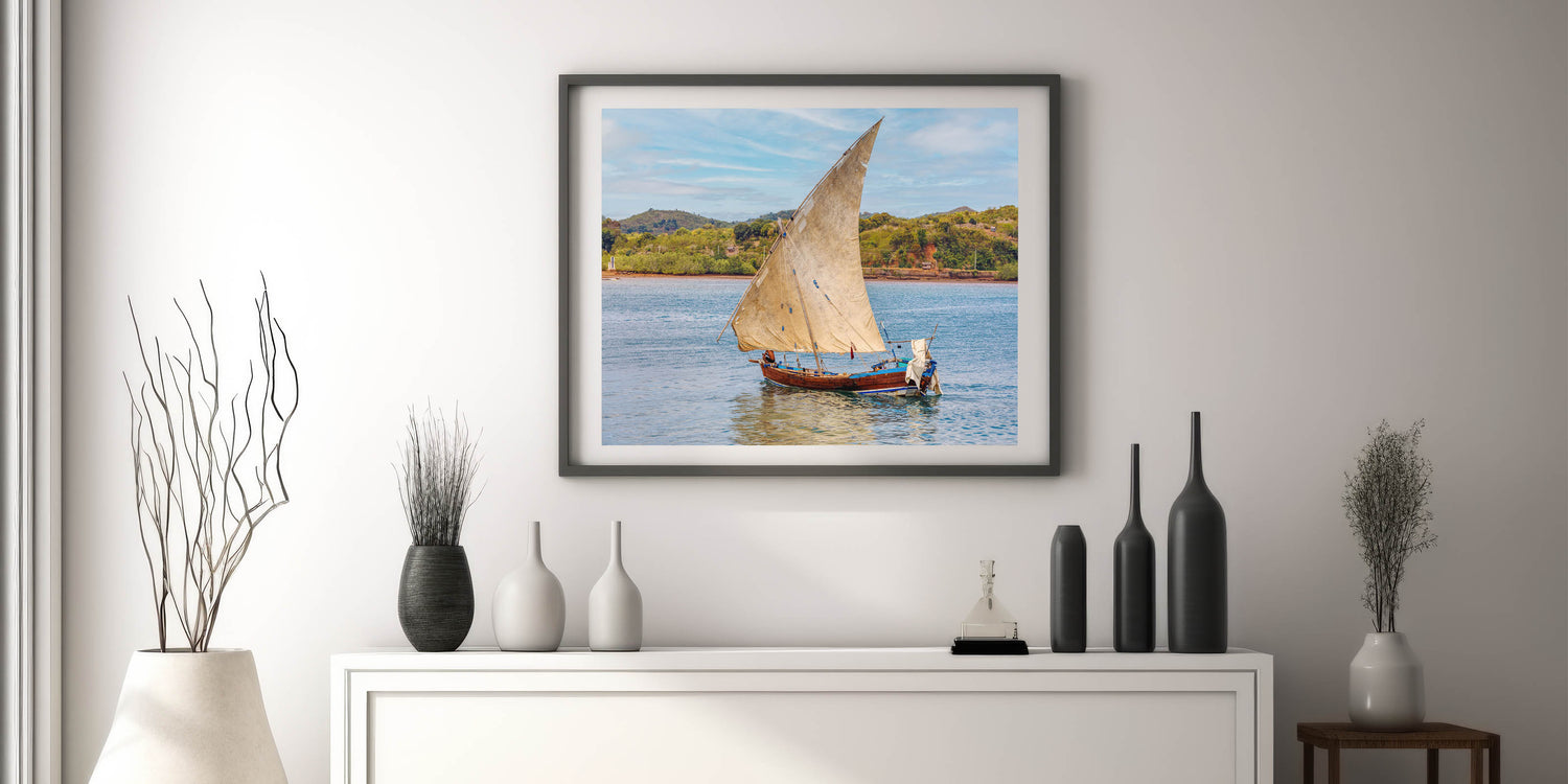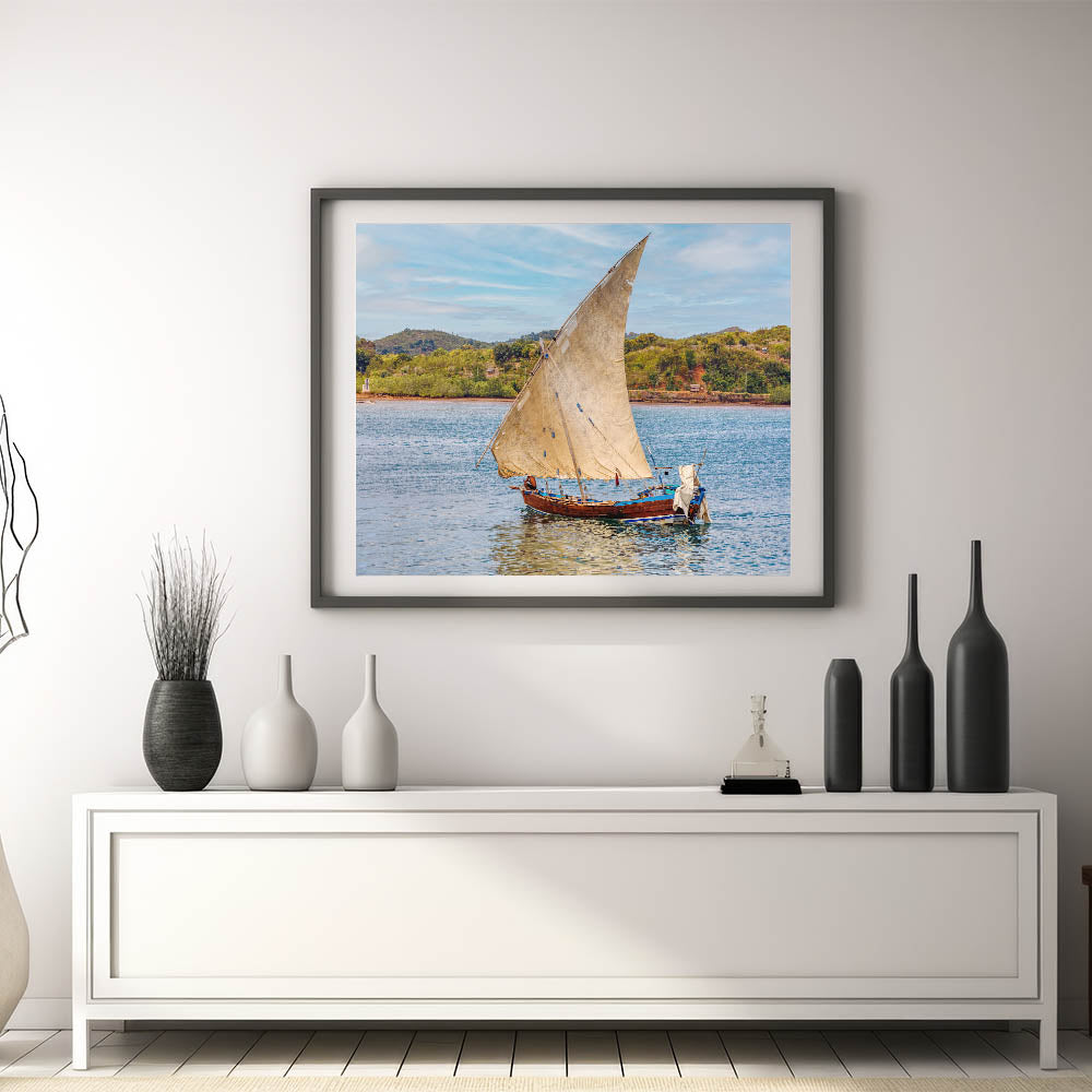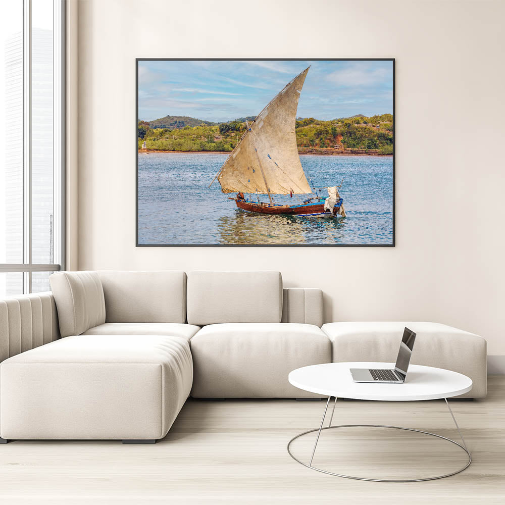 African Region Wall Decor - Traditional Sailboat on Calm Waters