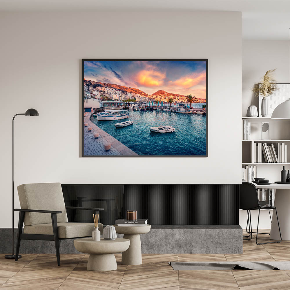 Albania Canvas Art - Sunset Harbor View in Saranda