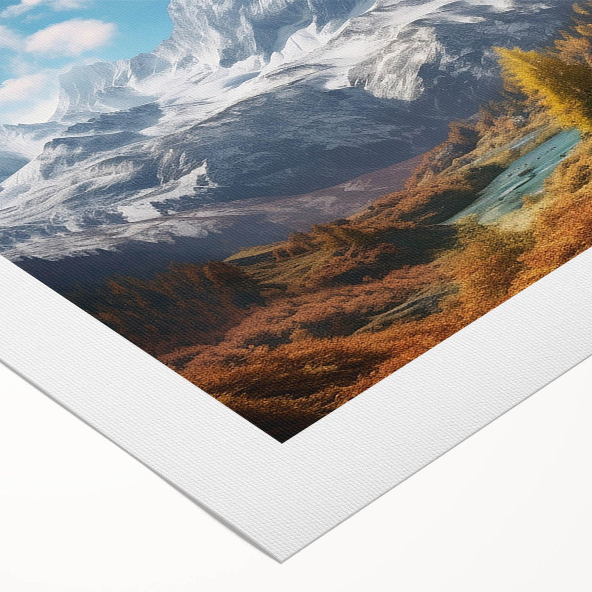 Transform your space with the majestic beauty of the French Alps through this stunning wall art. The towering snow-capped peak rises against the brilliant blue sky, while the autumn-hued valley below creates a rich contrast of colors. The golden foliage and crisp mountain air are perfectly captured, making this piece a breathtaking addition to any nature lover’s home. The intricate details of the alpine landscape offer a sense of tranquility and adventure, bringing the beauty of the outdoors into your living space.
