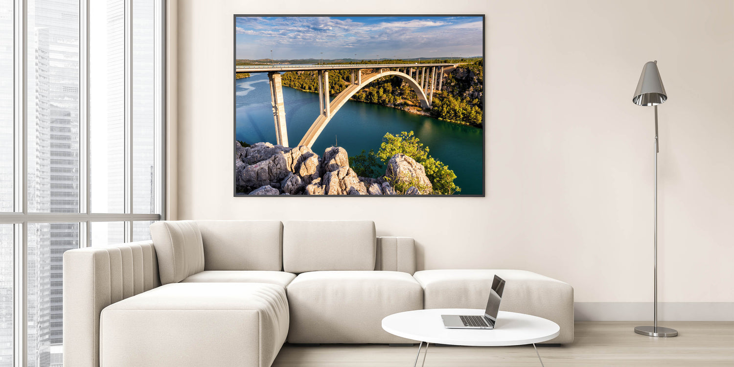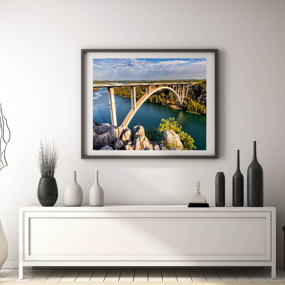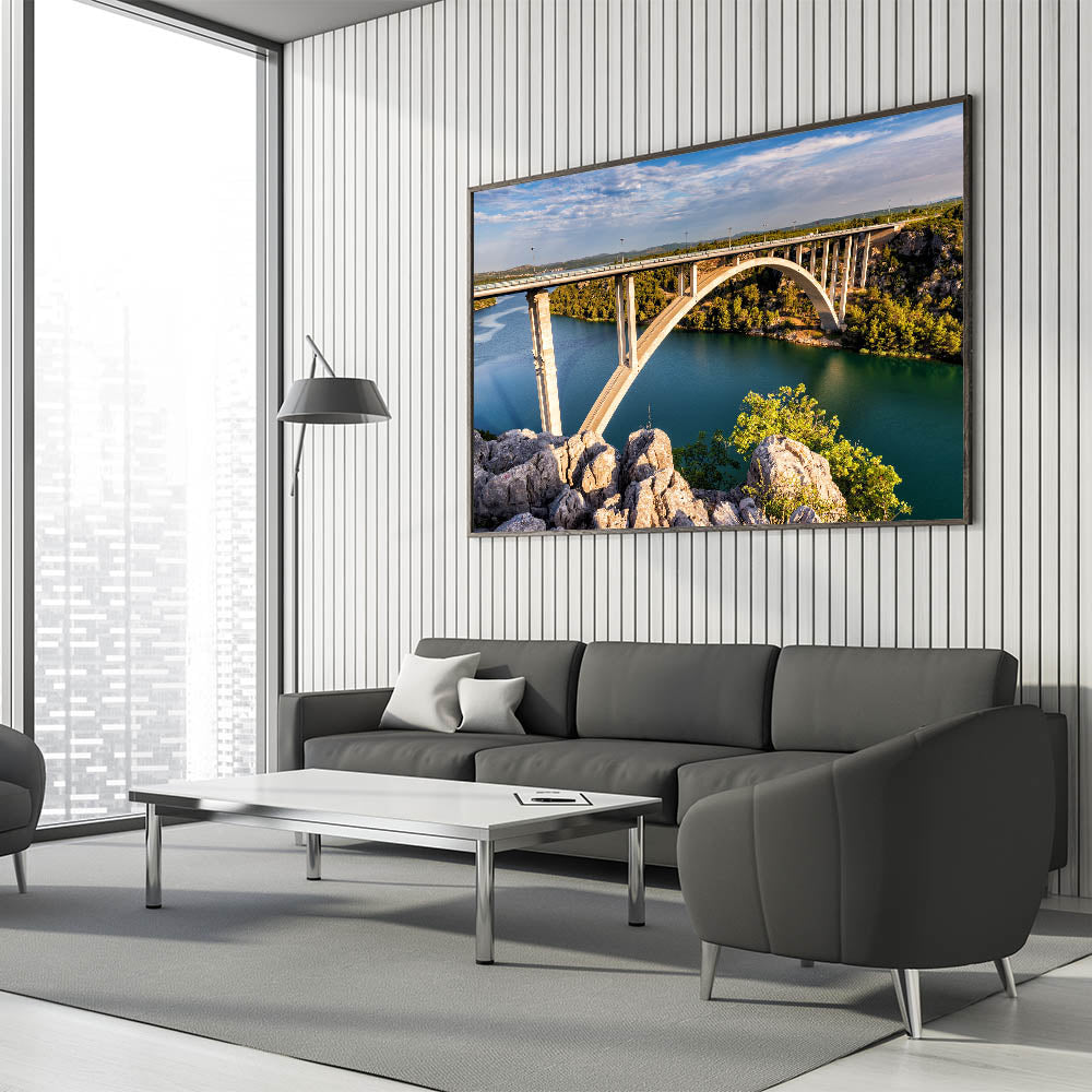 Elevate your interior decor with this breathtaking piece of bridge wall art. Perfect for those who appreciate the beauty of architectural design and nature, this artwork is sure to be a conversation starter. Order now to add a scenic touch to your space.