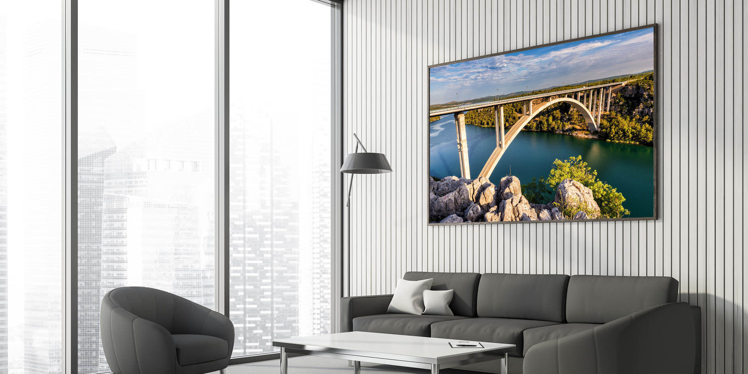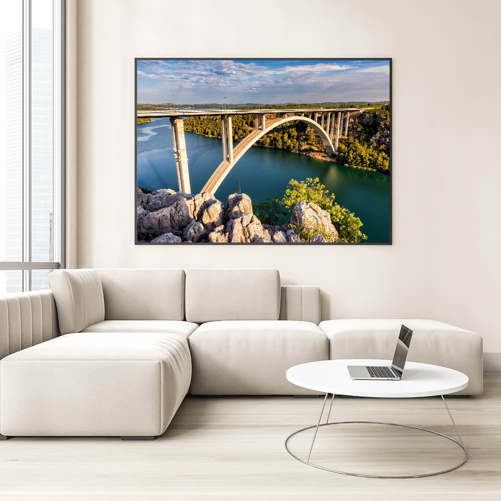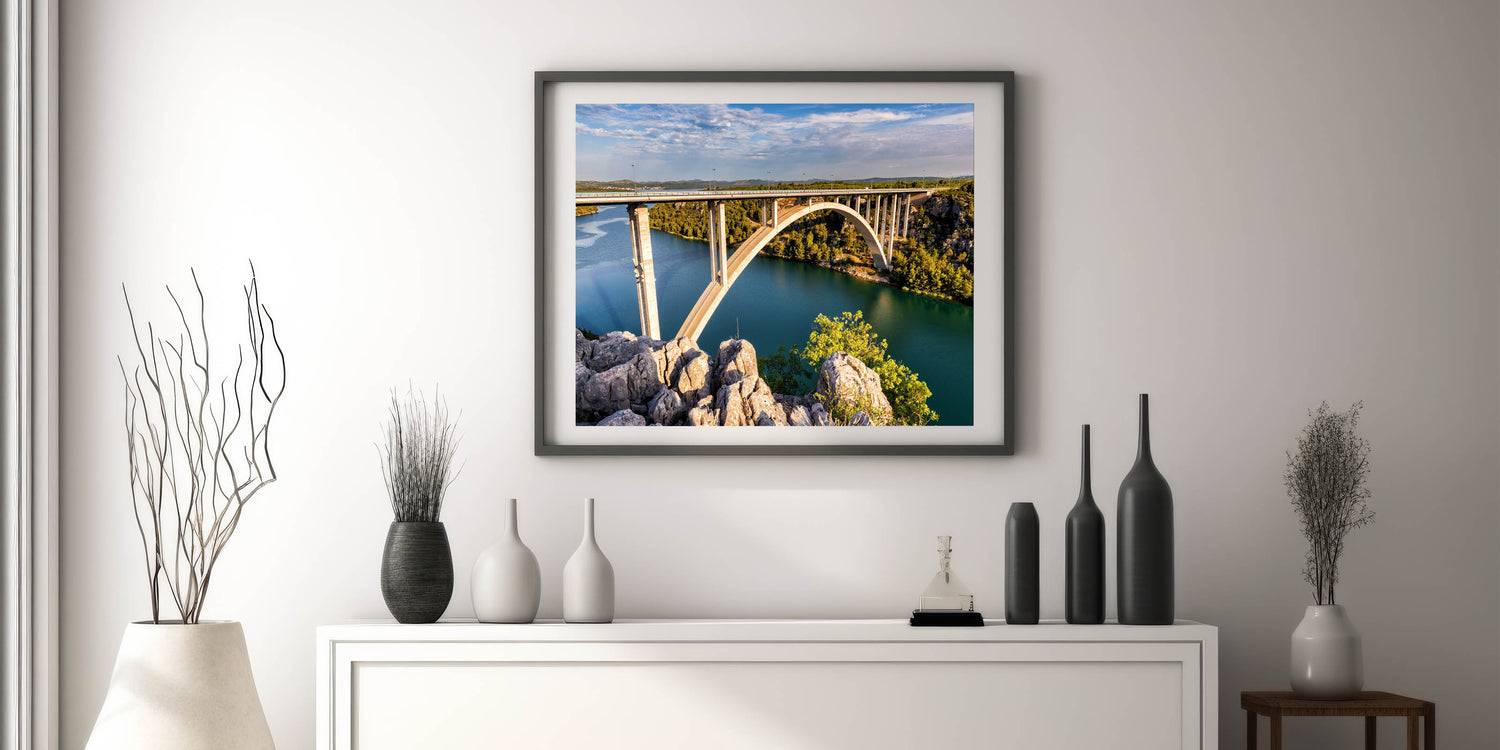 Elevate your interior decor with this breathtaking piece of bridge wall art. Perfect for those who appreciate the beauty of architectural design and nature, this artwork is sure to be a conversation starter. Order now to add a scenic touch to your space.
