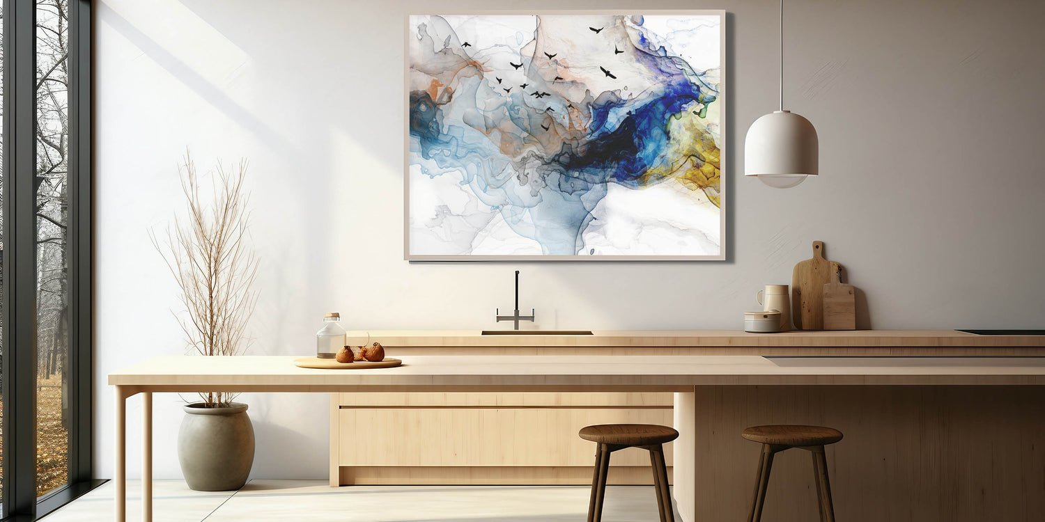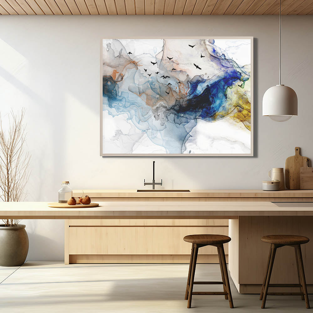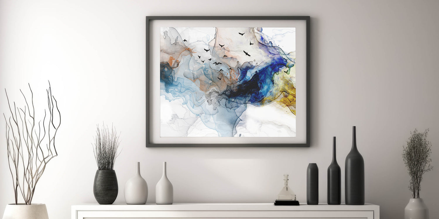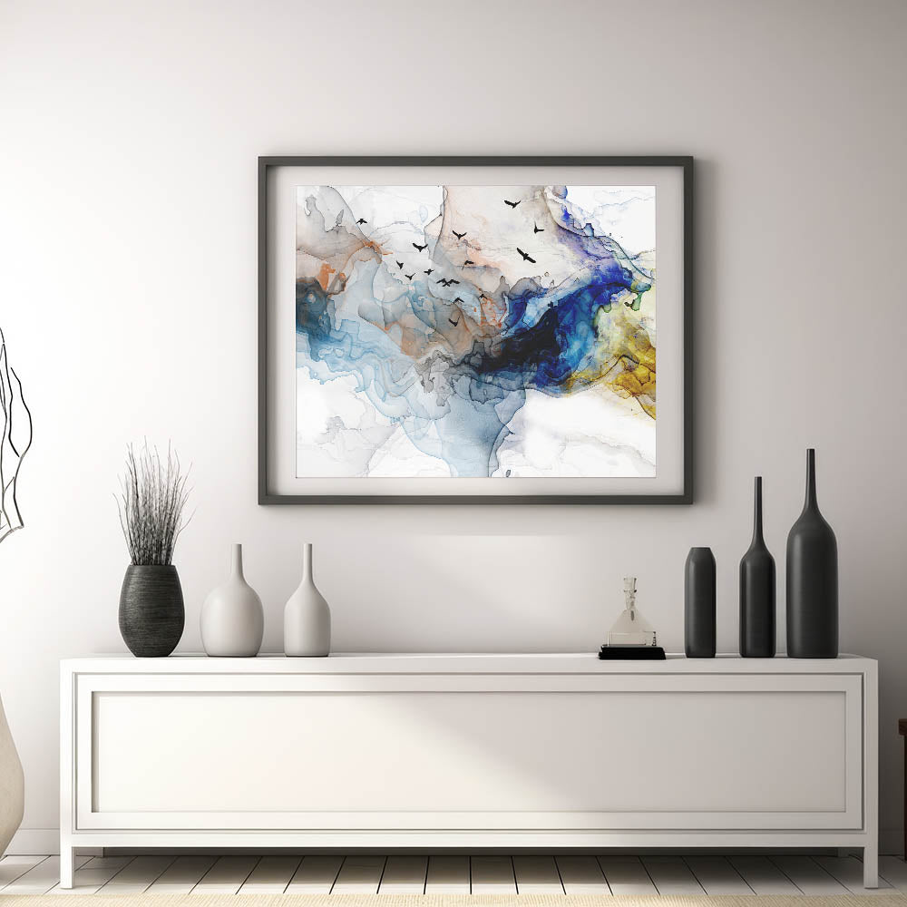 - Graceful Design: Features a harmonious blend of abstract strokes and fluid lines, with birds adding a dynamic and tranquil touch.