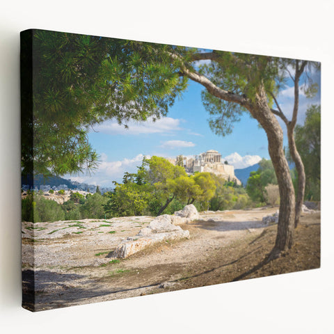 Bring the beauty of ancient Athens into your home with this scenic Athens Wall Art. Capturing a stunning view of the Acropolis framed by lush trees, this piece is a perfect addition to any room looking for a touch of nature and history. Part of the Athens Wall Art Collection, this artwork portrays the harmony between the timeless architecture of the Parthenon and the natural landscape.