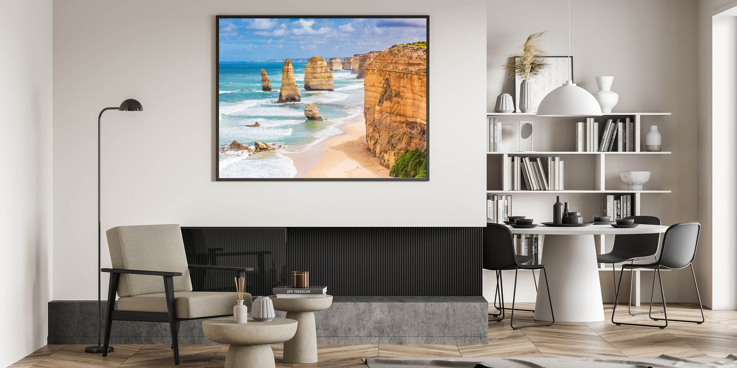 Introducing our striking "Australia Wall Art," featuring the iconic Twelve Apostles along the stunning Australian coastline. This artwork captures the natural majesty of Australia’s southern shores, presented on high-quality materials such as stretched canvas, framed prints, and acrylic glass, ensuring durability and vibrancy.