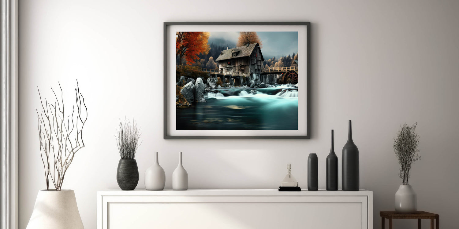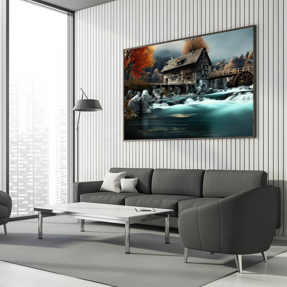 Bring the breathtaking beauty of autumn into your home with this striking watermill print. Whether you’re looking to enhance a contemporary space or add warmth to a traditional decor, this artwork is sure to be a focal point in any room. Explore our collection for more scenic watermill art that complements your style.