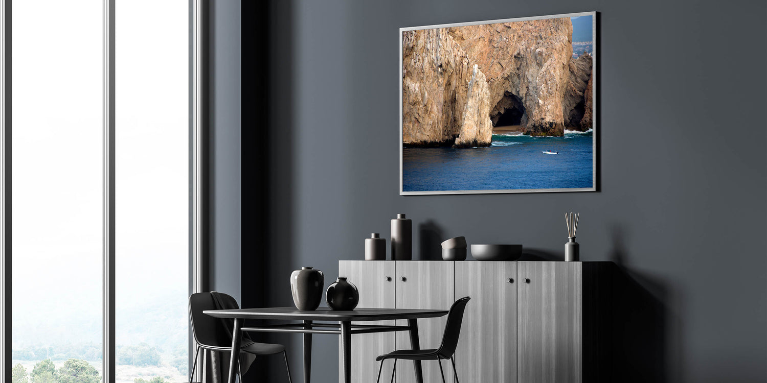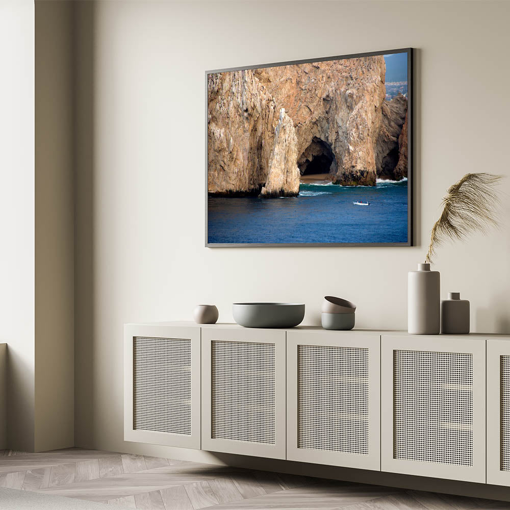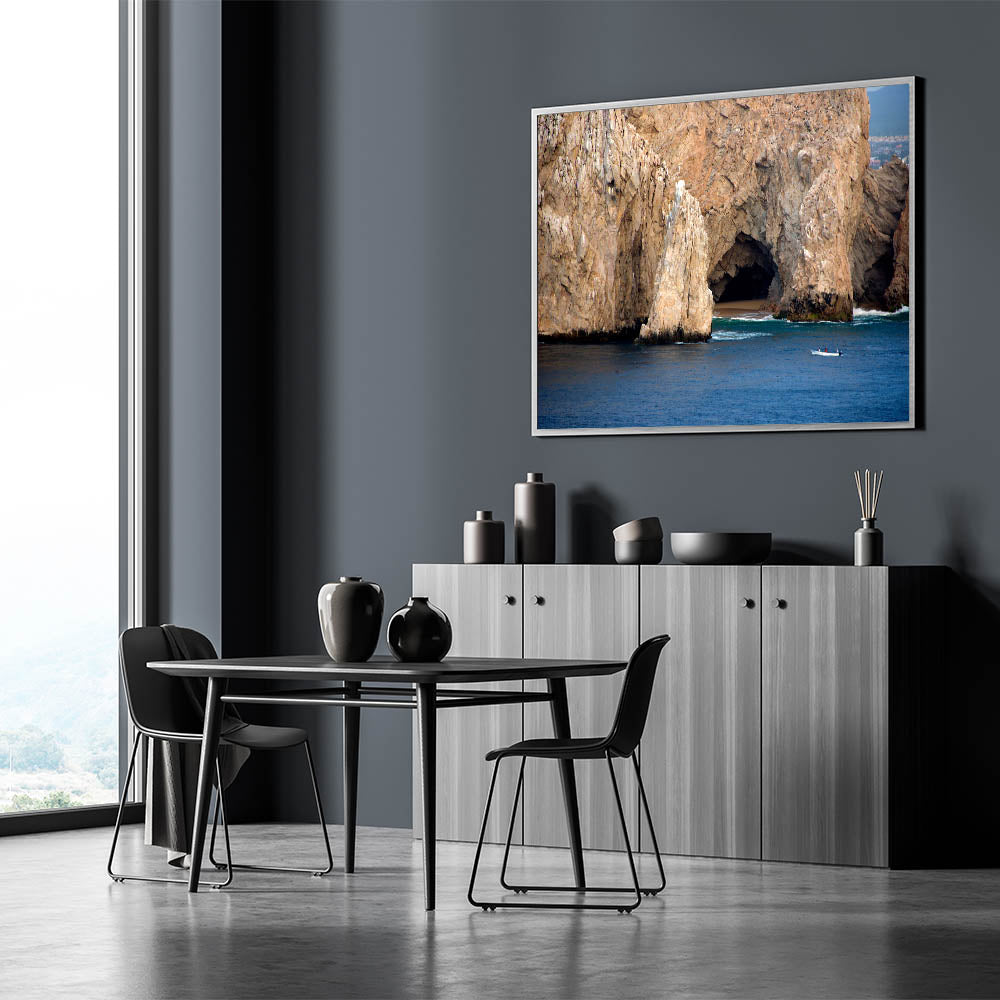 Bring the raw beauty of Baja California Sur into your home with this stunning wall art featuring the region's iconic coastal cliffs. This detailed photograph captures the essence of the Mexican landscape, where the rugged terrain meets the tranquil waters of the Pacific Ocean.