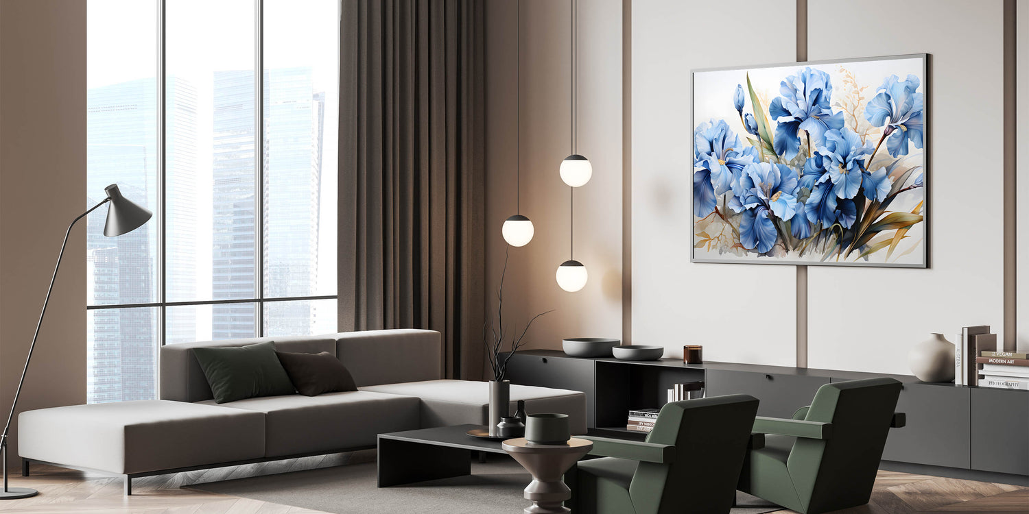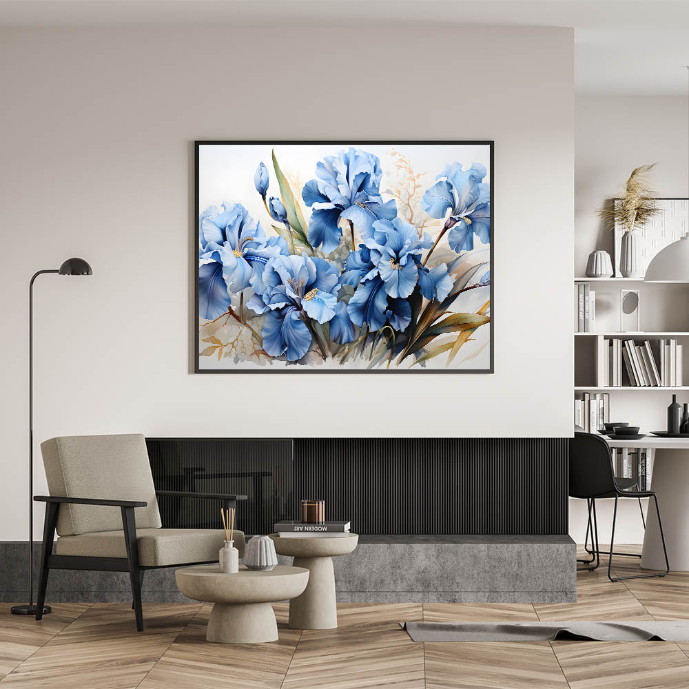 Blue Iris Flower Wall Art - Botanical Canvas Print for Home Decor