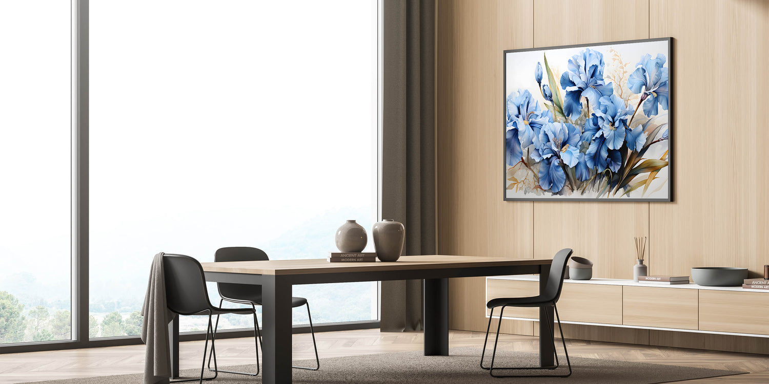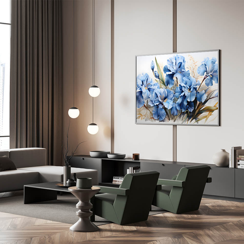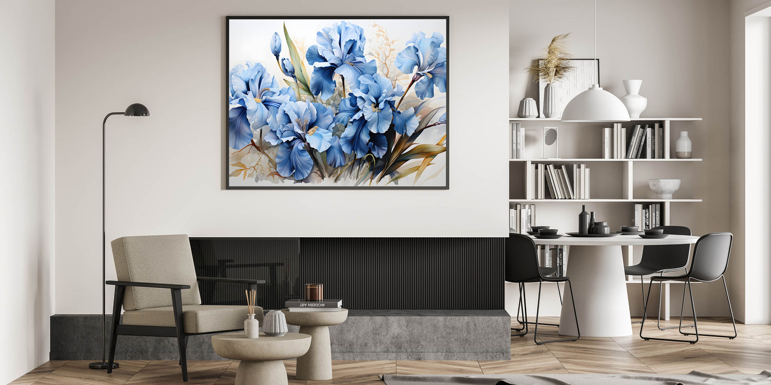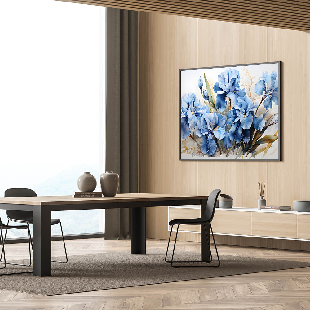 Bring the beauty of nature into your home with this stunning Blue Iris Flower Wall Art. The vibrant blue irises, delicately detailed against a soft, neutral background, create a calming and elegant addition to any room. Perfect for modern and classic interiors alike, this Botanical Canvas Print captures the elegance and grace of nature, making it a versatile choice for a variety of spaces. Whether in the living room, bedroom, or dining area, this art piece elevates your decor with its serene yet striking design.