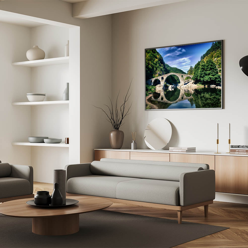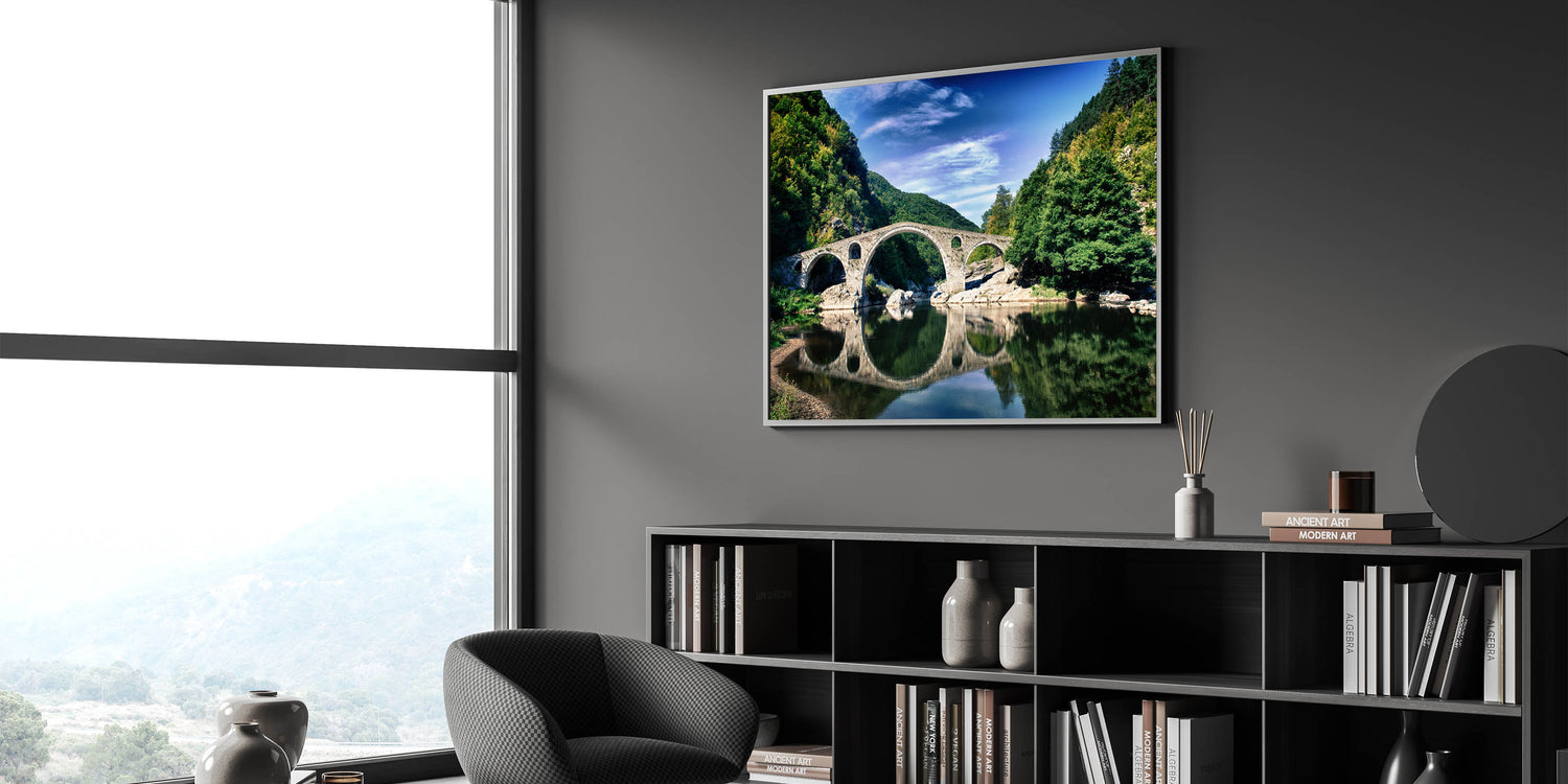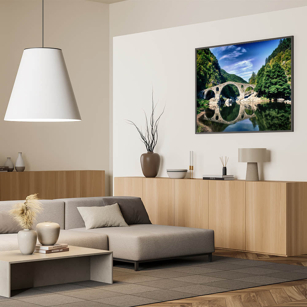 Capture the breathtaking beauty of Bulgaria’s historic landscapes with this stunning Bulgaria wall art piece. Featuring an iconic stone arch bridge set amidst the lush greenery of the Rhodope Mountains, this artwork is the perfect addition to your home or office decor. Ideal for lovers of Bulgarian landscape art, this print transports you to a tranquil riverside scene where history and nature come together.