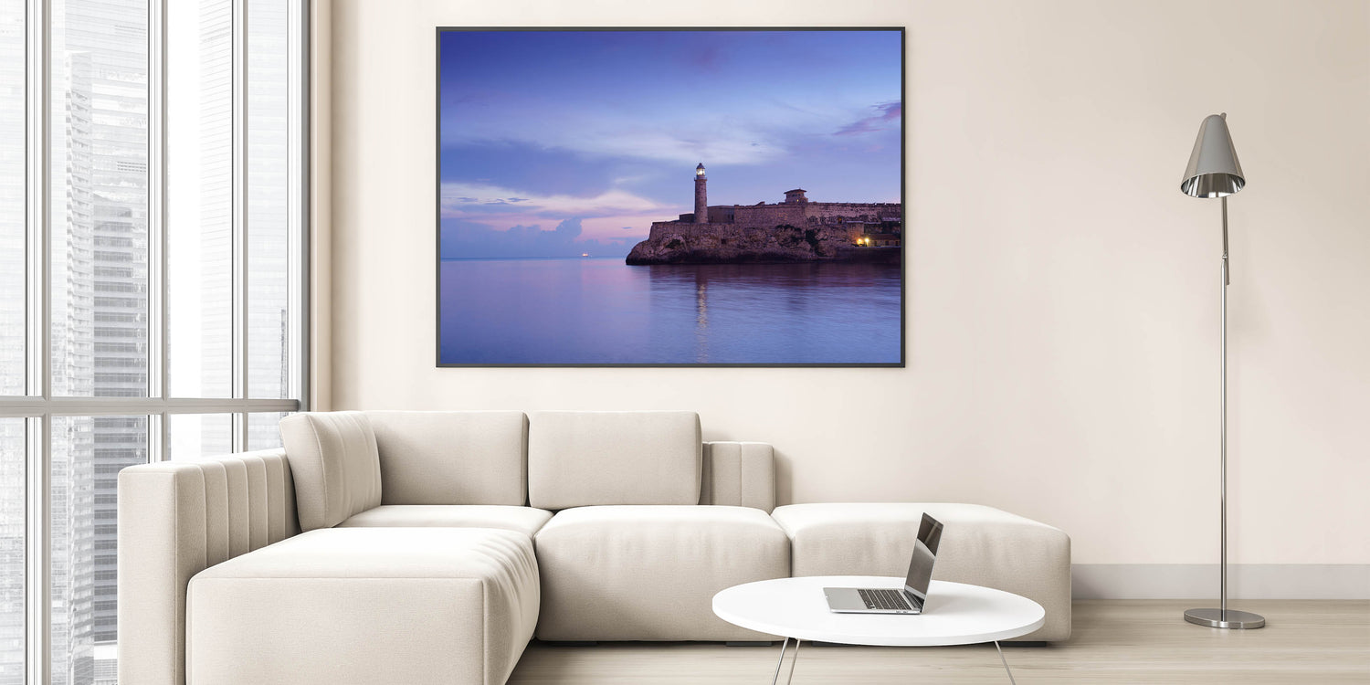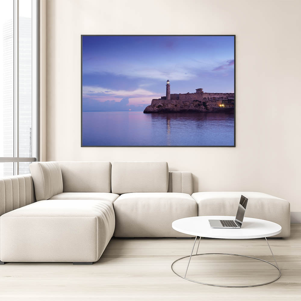 Bring the serene beauty of the Cuban coastline into your space with this stunning depiction of a lighthouse overlooking the calm Caribbean waters. This Cuba Wall Art highlights the peacefulness of Cuba's coastal regions, featuring an iconic lighthouse that stands as a testament to the country’s maritime history. The vibrant hues of the sunset sky blend perfectly with the tranquil sea, creating a harmonious and calming scene, perfect for any room needing a touch of serenity.