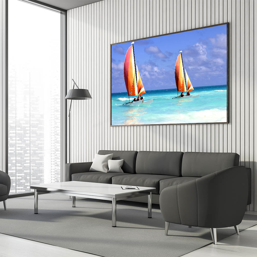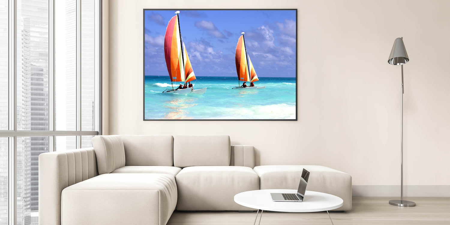 - High-quality print that highlights the bright colors and lively motion of the sailboats.