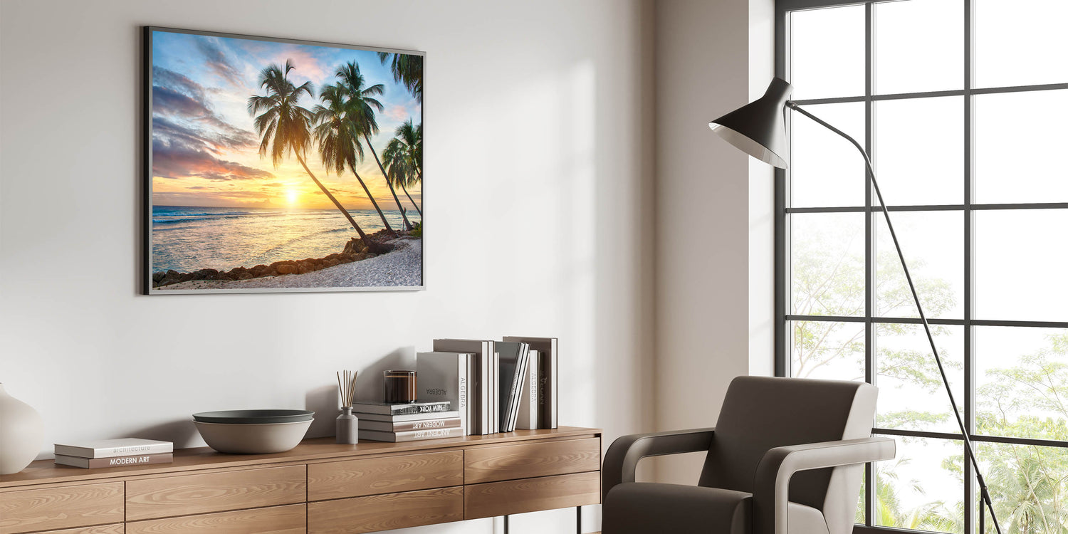 - High-resolution print that captures the vivid colors of the sunset and the details of the beach landscape.
