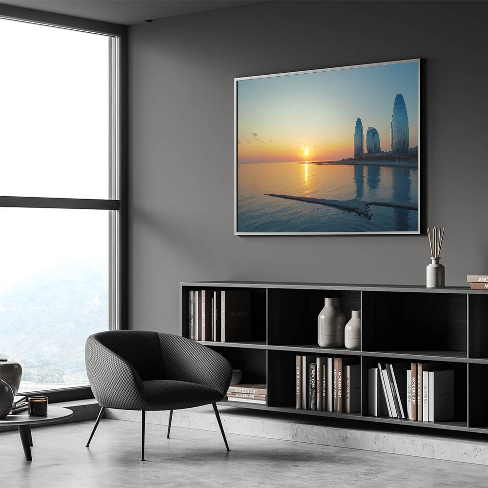 Bring the peaceful elegance of Baku’s skyline into your home with this captivating sunset art. It’s perfect for those who appreciate the beauty of modern architecture and serene coastal landscapes.