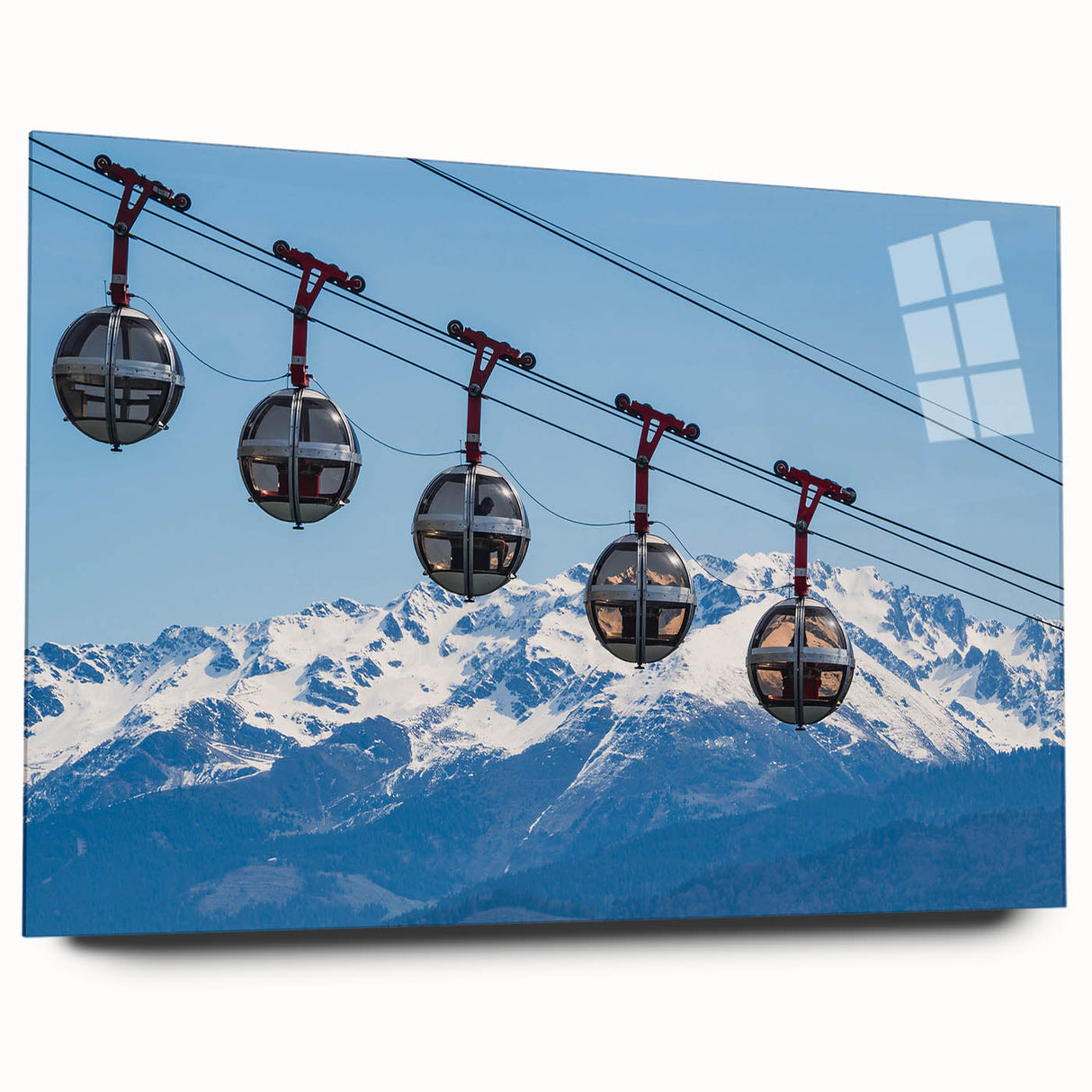 Chamonix Mont Blanc Art - Alpine Cable Cars with Snow-Capped Peaks