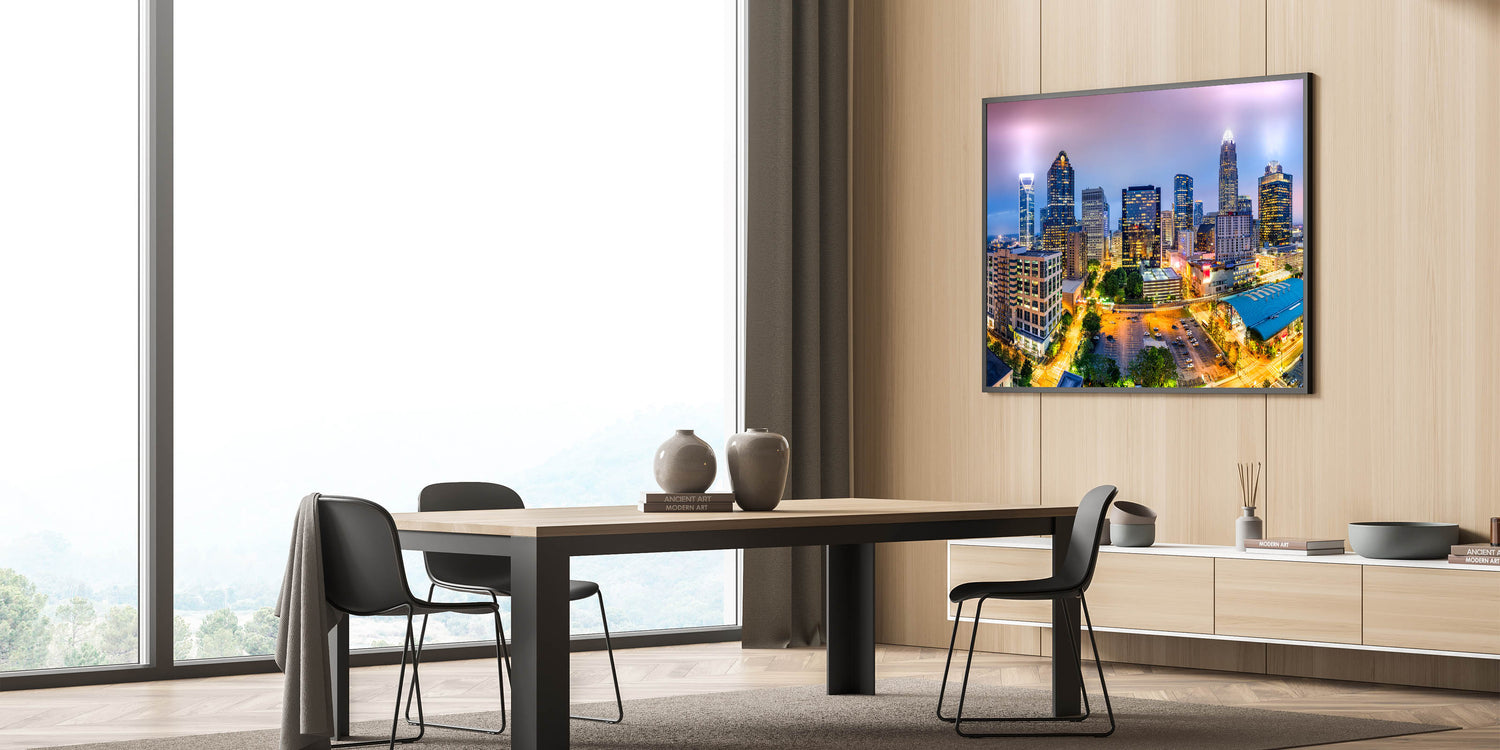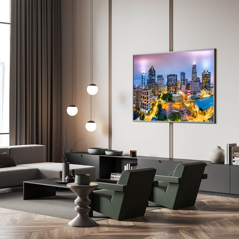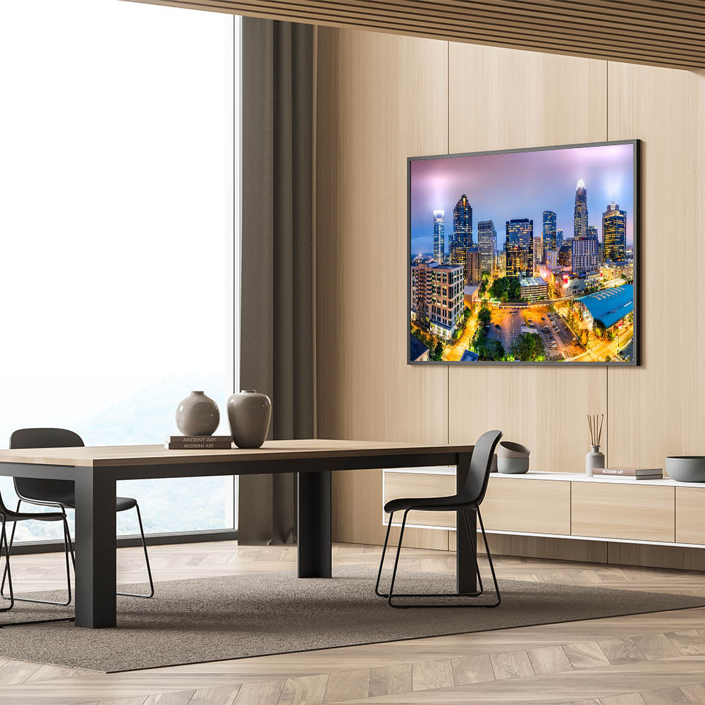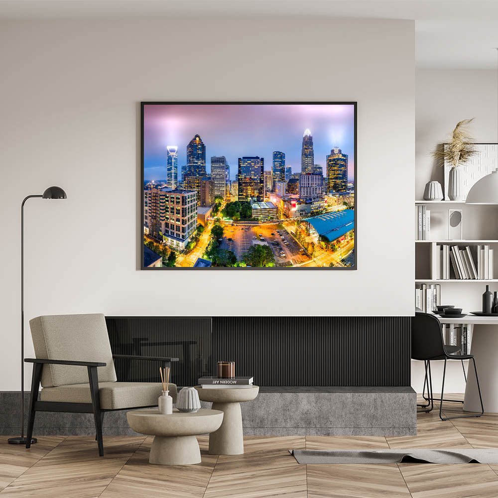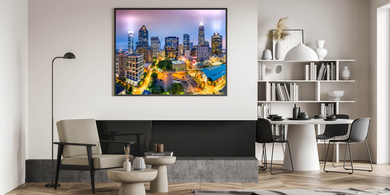 - Vibrant Colors: The high-resolution print captures the rich and varied hues of Charlotte’s skyline at dusk.