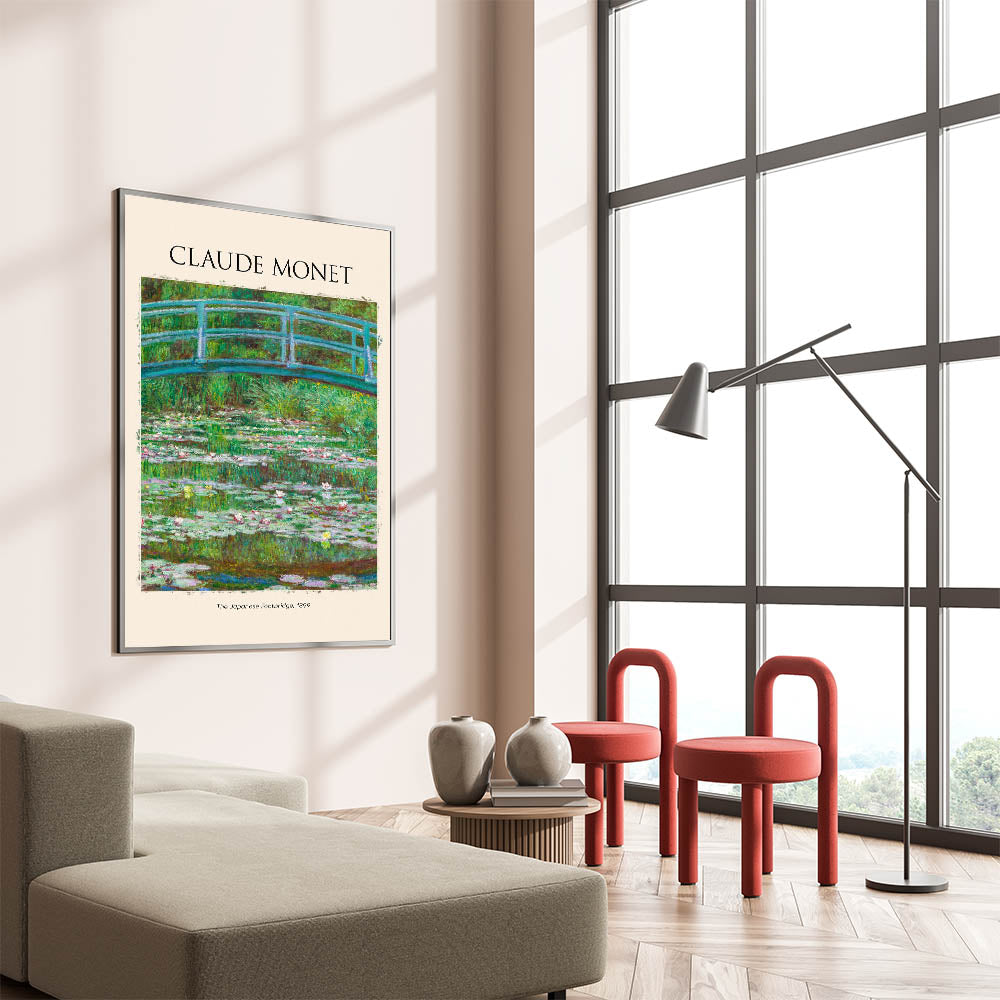 Bring the tranquility of Claude Monet's renowned garden to your home with "The Japanese Footbridge, 1899." This stunning Impressionist masterpiece captures the serene beauty of Monet's iconic water lily pond, with the delicate arch of the Japanese footbridge standing gracefully over the reflective water. The painting reflects Monet's mastery of light and color, making it an exquisite addition to any space.