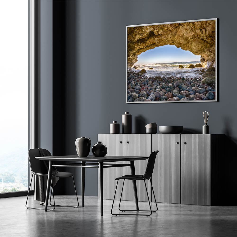 Coastal Cave View Newfoundland - Serene Ocean Pebbles Wall Art Print
