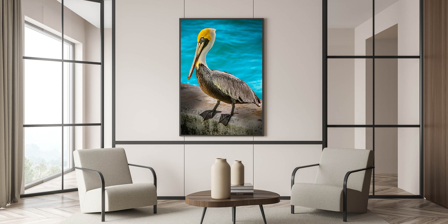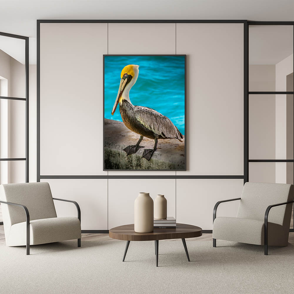 Coastal Pelican Wall Art - Vibrant Pelican Print for Coastal Decor