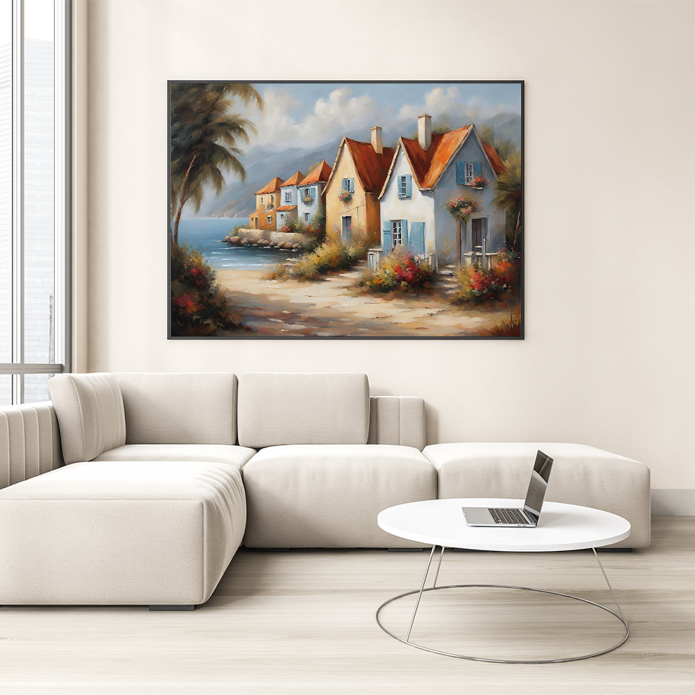 Coastal Village Wall Art - Charming Seaside Canvas Print for Home Decor