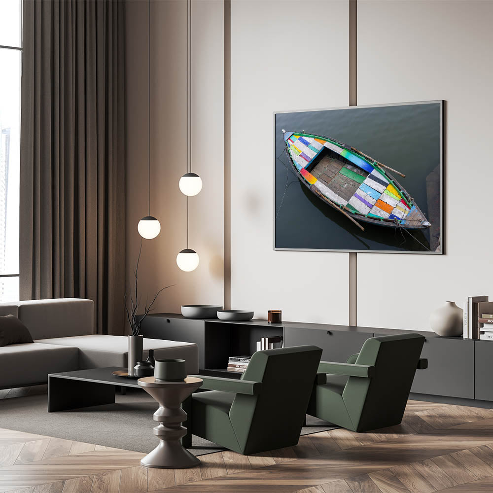 - Available in stretched canvas, framed canvas, and acrylic glass