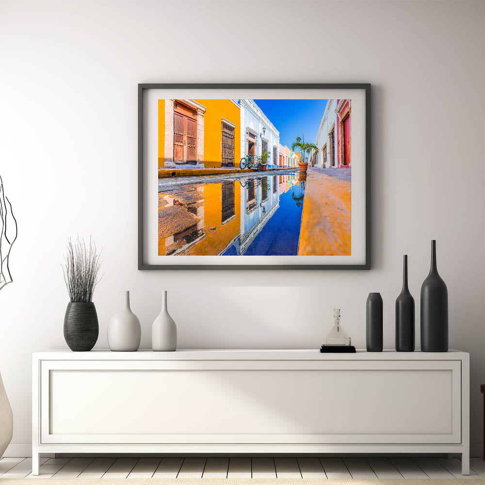 Colorful Yucatan Street Reflection - Mexico Yucatan Wall Art Print