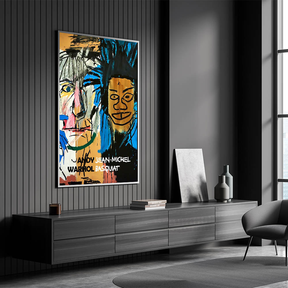 Experience the fusion of two legendary artists with this Basquiat and Warhol-inspired canvas, blending the dynamic energy of Jean-Michel Basquiat’s street art with the iconic pop art style of Andy Warhol. This contemporary Basquiat graffiti art piece brings a vibrant and avant-garde atmosphere to your home, showcasing the creative synergy between two artistic revolutionaries.