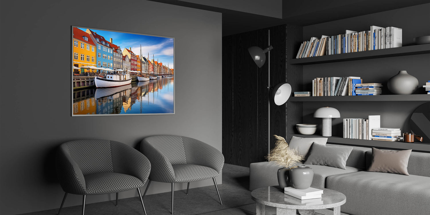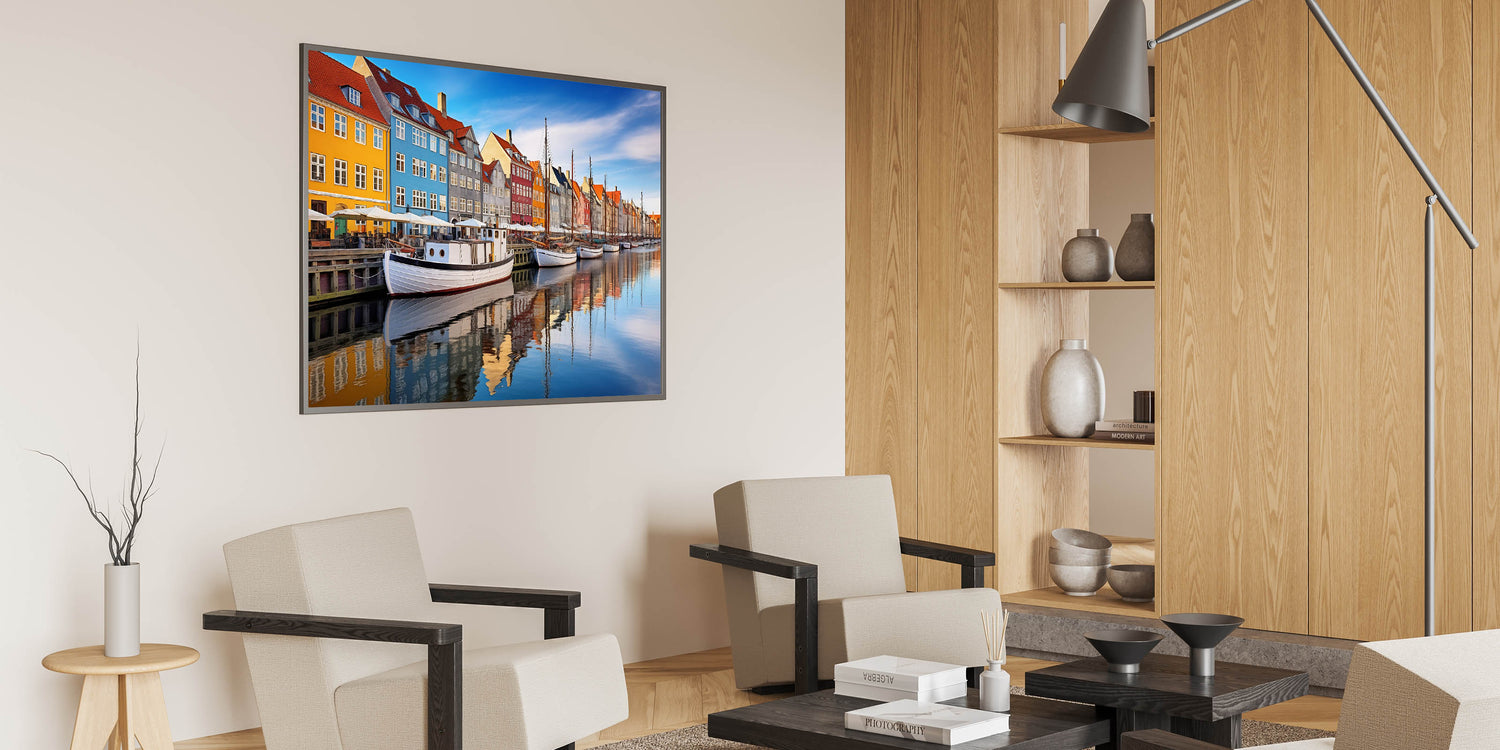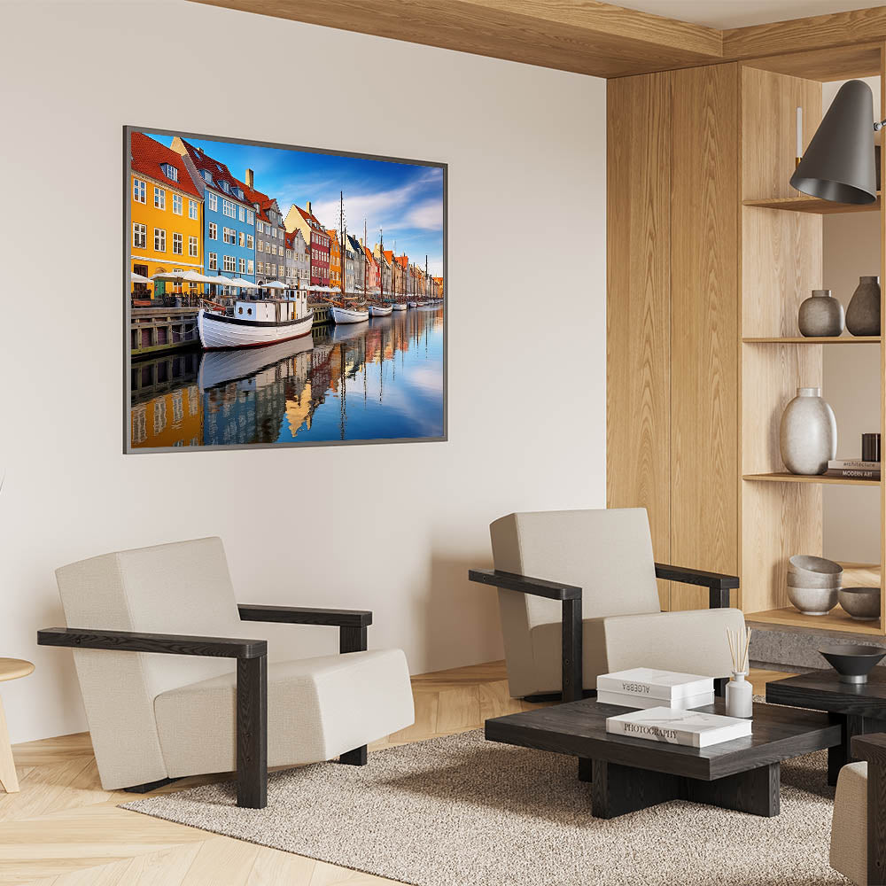 This Copenhagen canvas print celebrates the lively colors and reflections of one of Denmark’s most famous harbors. Whether you're decorating a modern or traditional space, this artwork will bring a sense of urban charm and Nordic beauty to your interior.