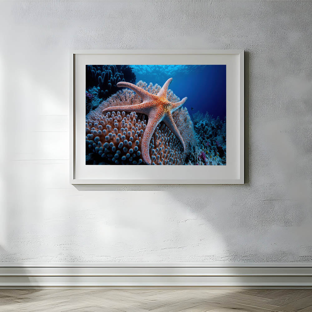 Immerse yourself in the vibrant beauty of the ocean with this stunning coral and starfish wall art. This piece captures the dynamic interplay between the colorful coral formations and the graceful starfish, creating a captivating underwater scene. Perfect for marine life enthusiasts, this artwork brings the tranquility and wonder of the ocean into your home.