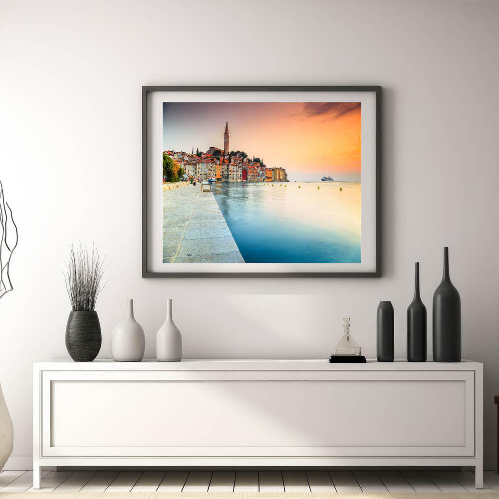 Croatian Landscape Art - Rovinj Waterfront Sunset Print