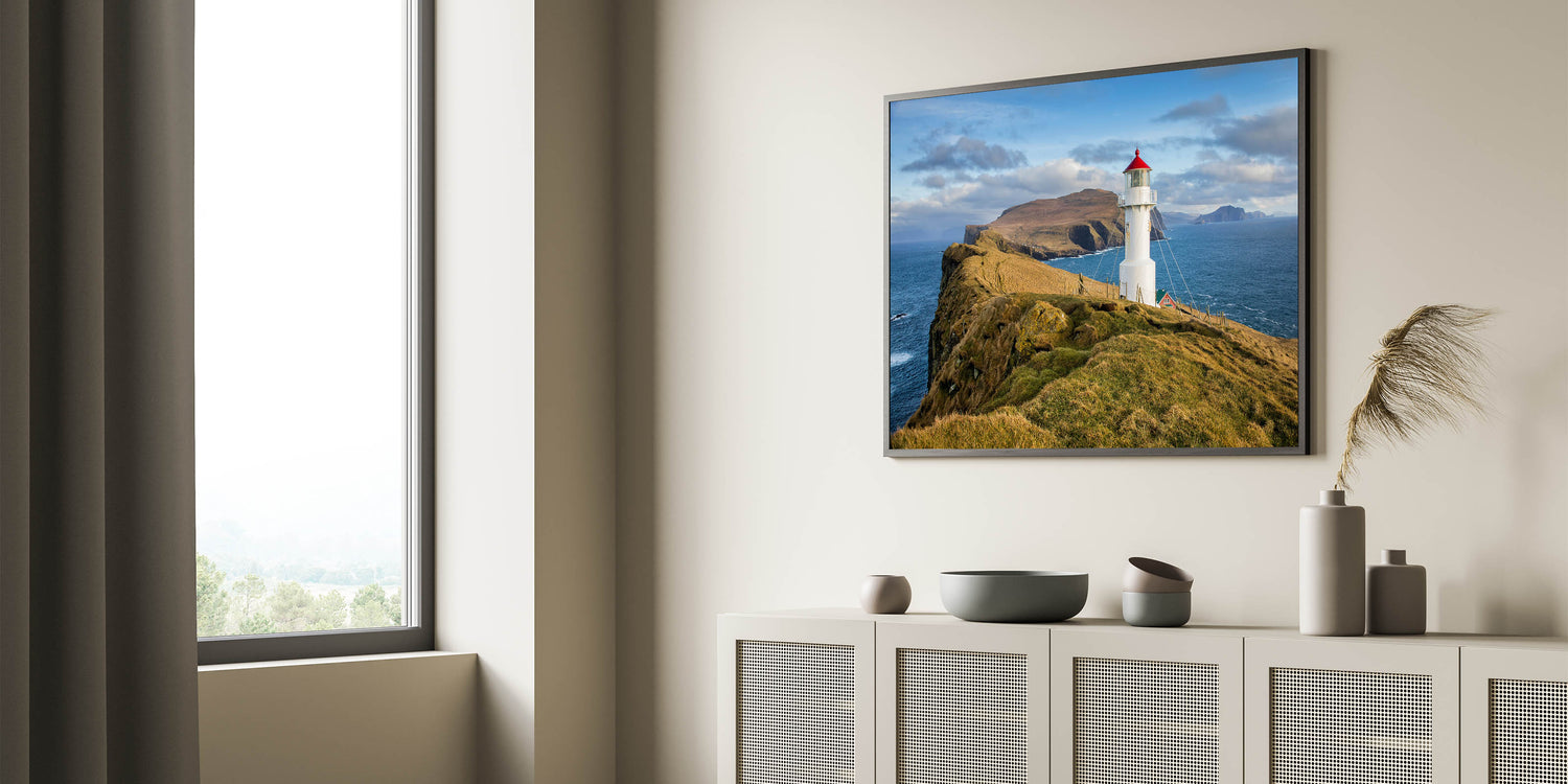Experience the stunning natural beauty of Denmark with this mesmerizing Danish landscape painting featuring a scenic coastal lighthouse. The piece captures the tranquility of the Danish coastline, making it a perfect addition to your Nordic wall decor. The vivid Denmark photography highlights the rugged cliffs and the calm ocean, creating a timeless piece of Scandinavian decor that will transform any space.