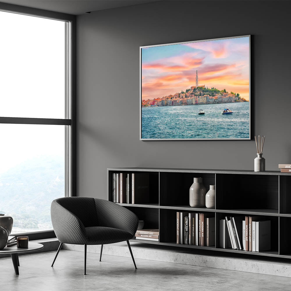 Perfect for those who admire European coastal towns, this artwork transforms any room by bringing a slice of Croatian serenity and heritage right into your home or office space.