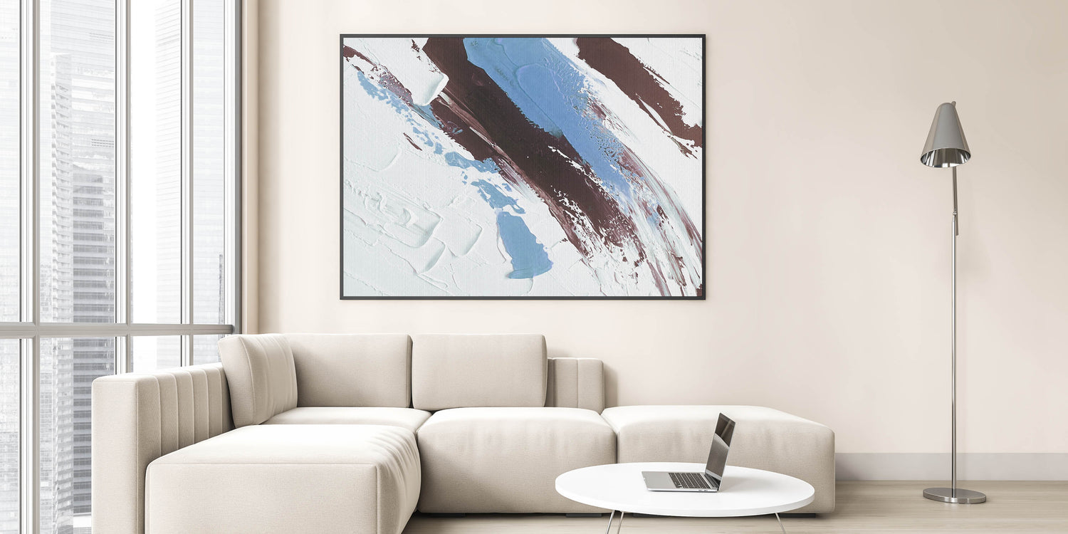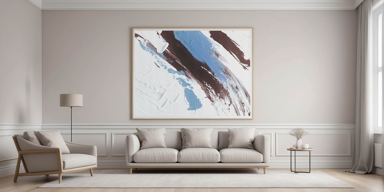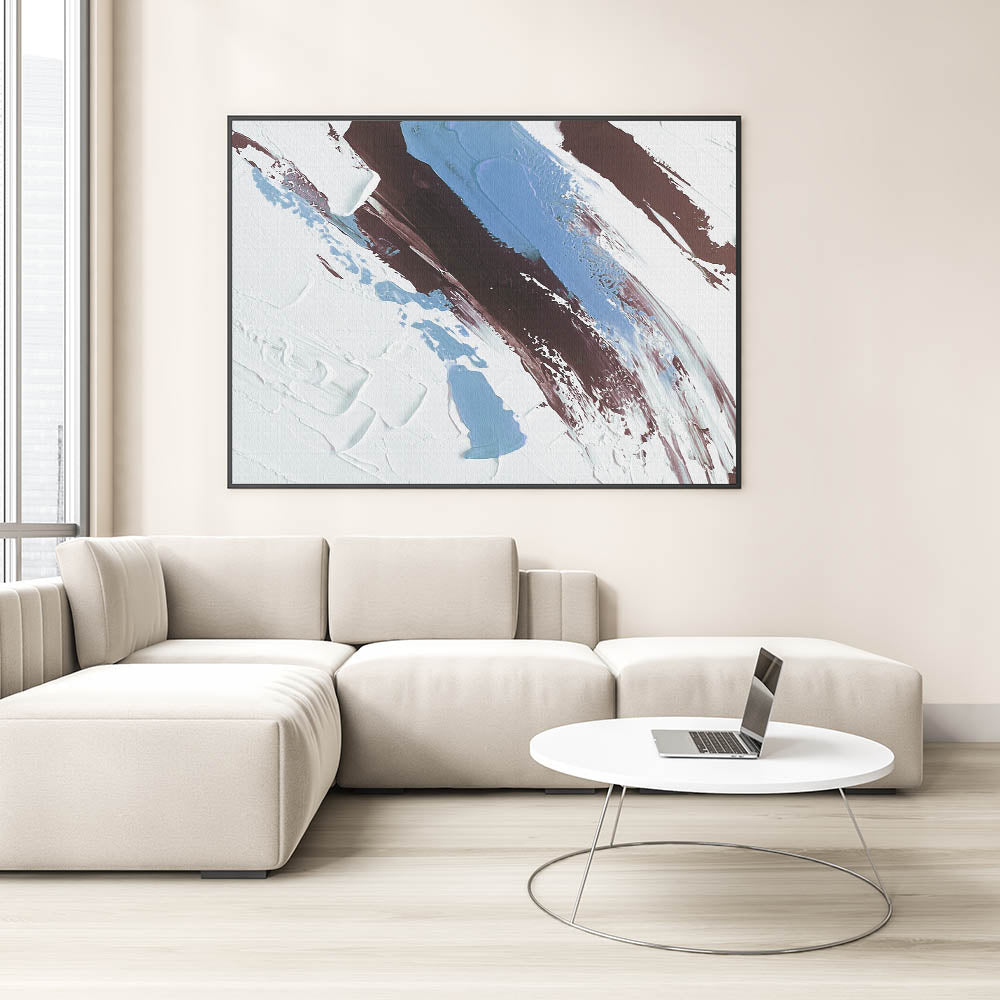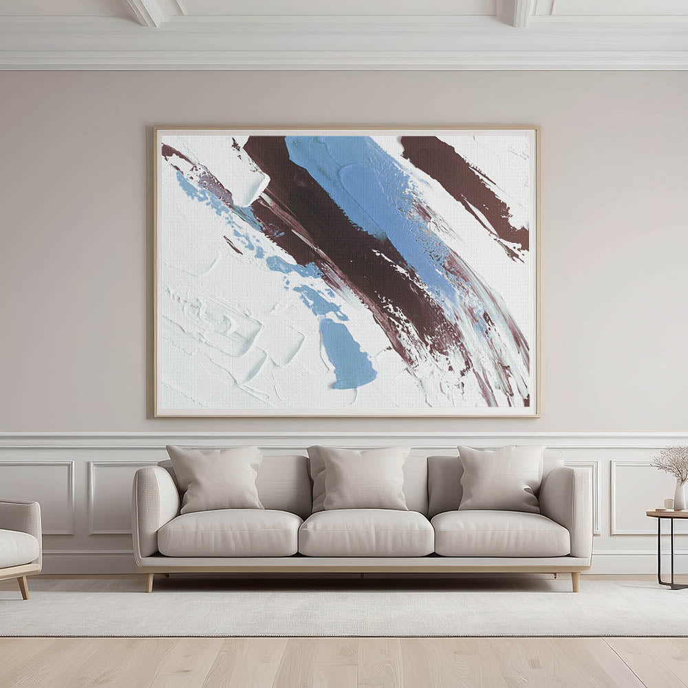 Add a splash of dynamic energy to your space with this abstract strokes and lines artwork. Featuring bold swathes of deep blue and earthy brown against a pristine white background, this piece brings a sense of movement and vitality to any room. The textured brush strokes create a captivating depth, making it a perfect addition to modern and contemporary interiors.