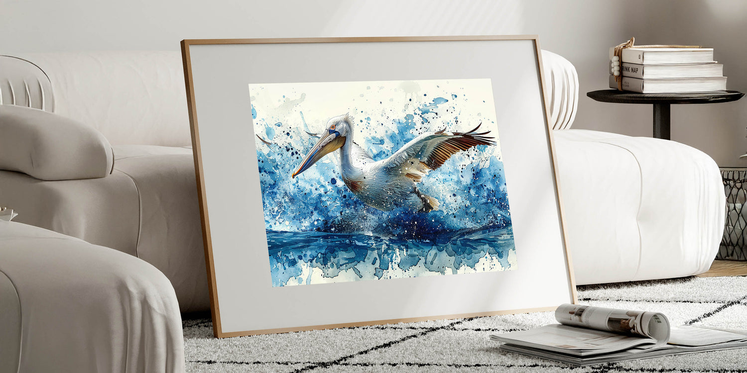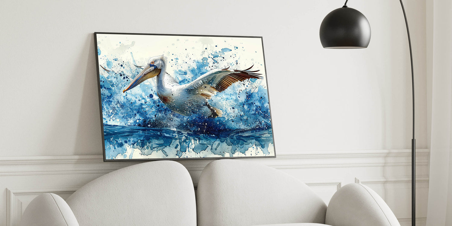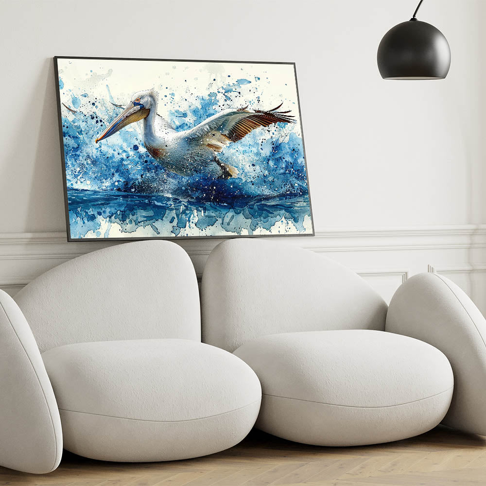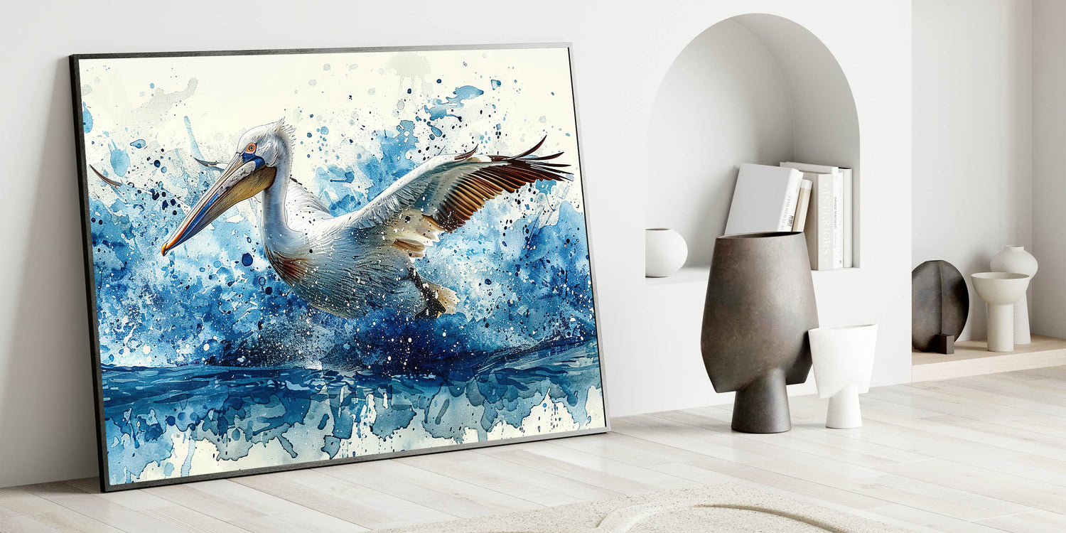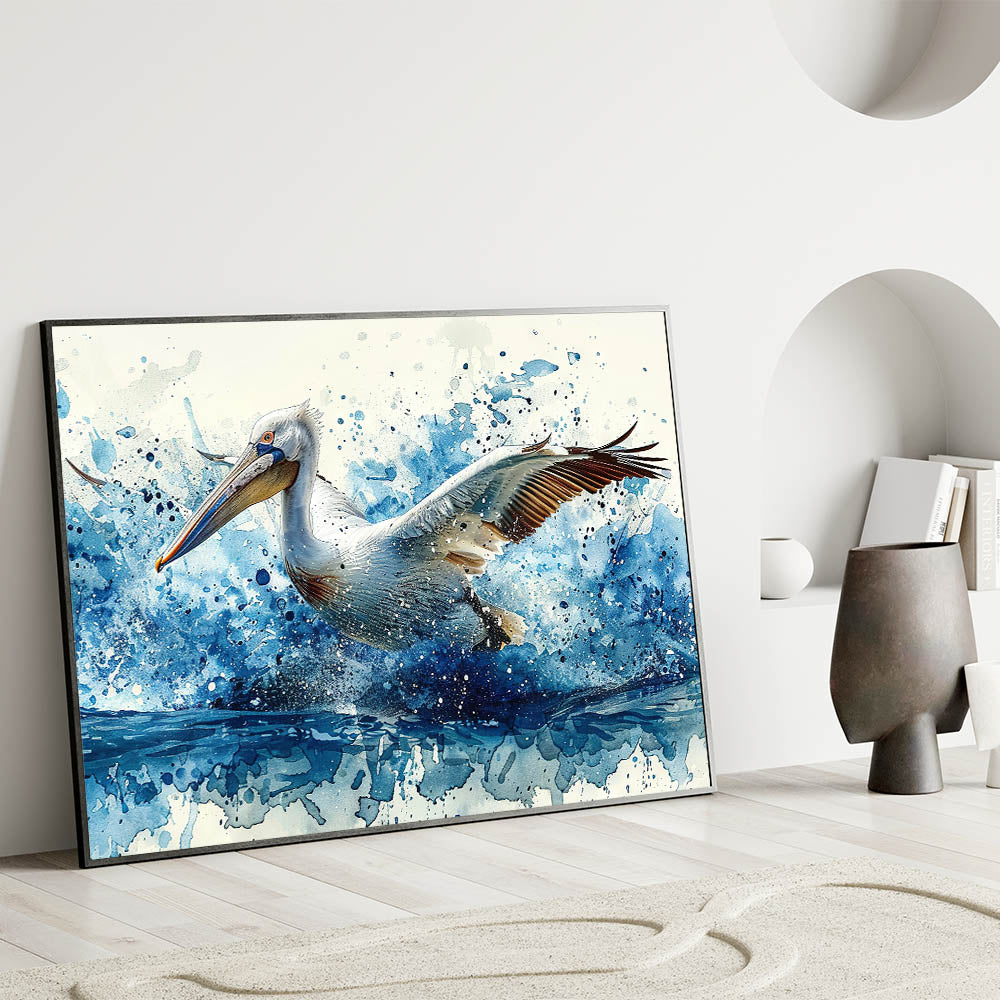 Dynamic Splash Pelican Art - Vibrant Pelican Decor for Modern Homes