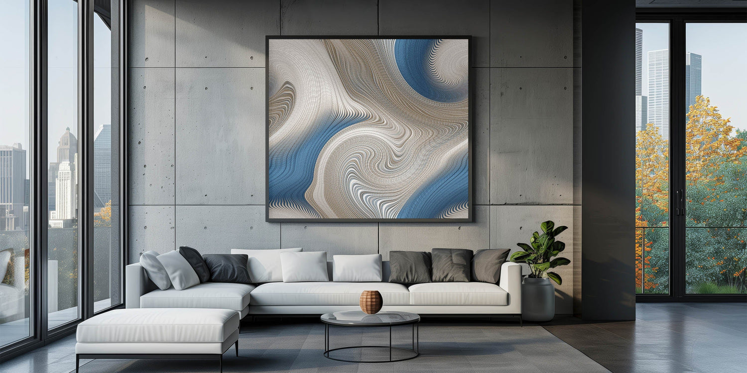 Explore the perfect blend of motion and stillness in this dynamic piece from our Earthen Harmony Abstracts collection. This fluid, wave-like composition brings together deep earth tones and cool blues to form an engaging piece of Modern Abstract Art that radiates calm and energy in equal measure. Designed for lovers of Neutral Abstract Prints and Minimalist Wall Decor, it's a seamless fit for today’s stylish interiors.